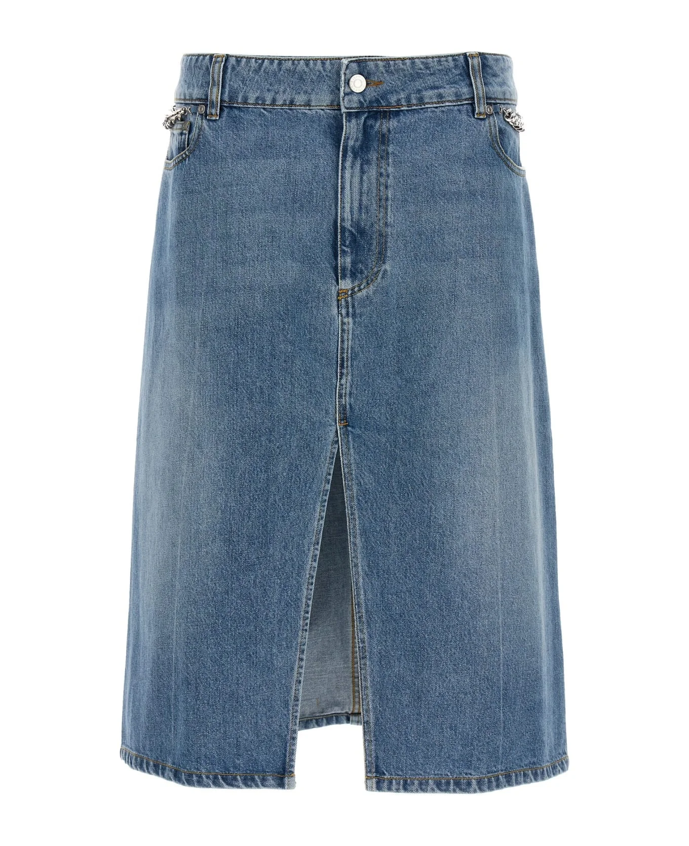 + NET SUSTAIN chain-embellished denim midi skirt Blue
