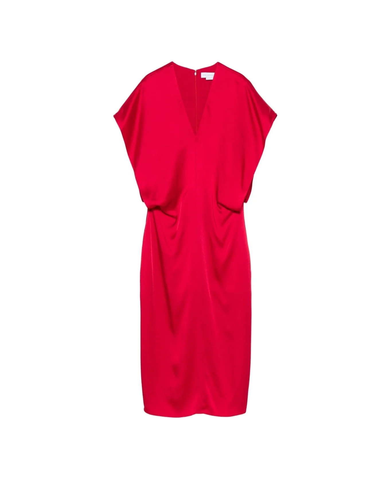 red V-neck short sleeves gathered waist Composition: Acetate, 73% , Viscose, 27% Made in: Italy Color: Red Size and fit: - This piece fits true to size. We recommend you get your regular size - Model is 1,75m / 5ft 8in wearing size 40 (IT) Model number: 6A05613FU3025001