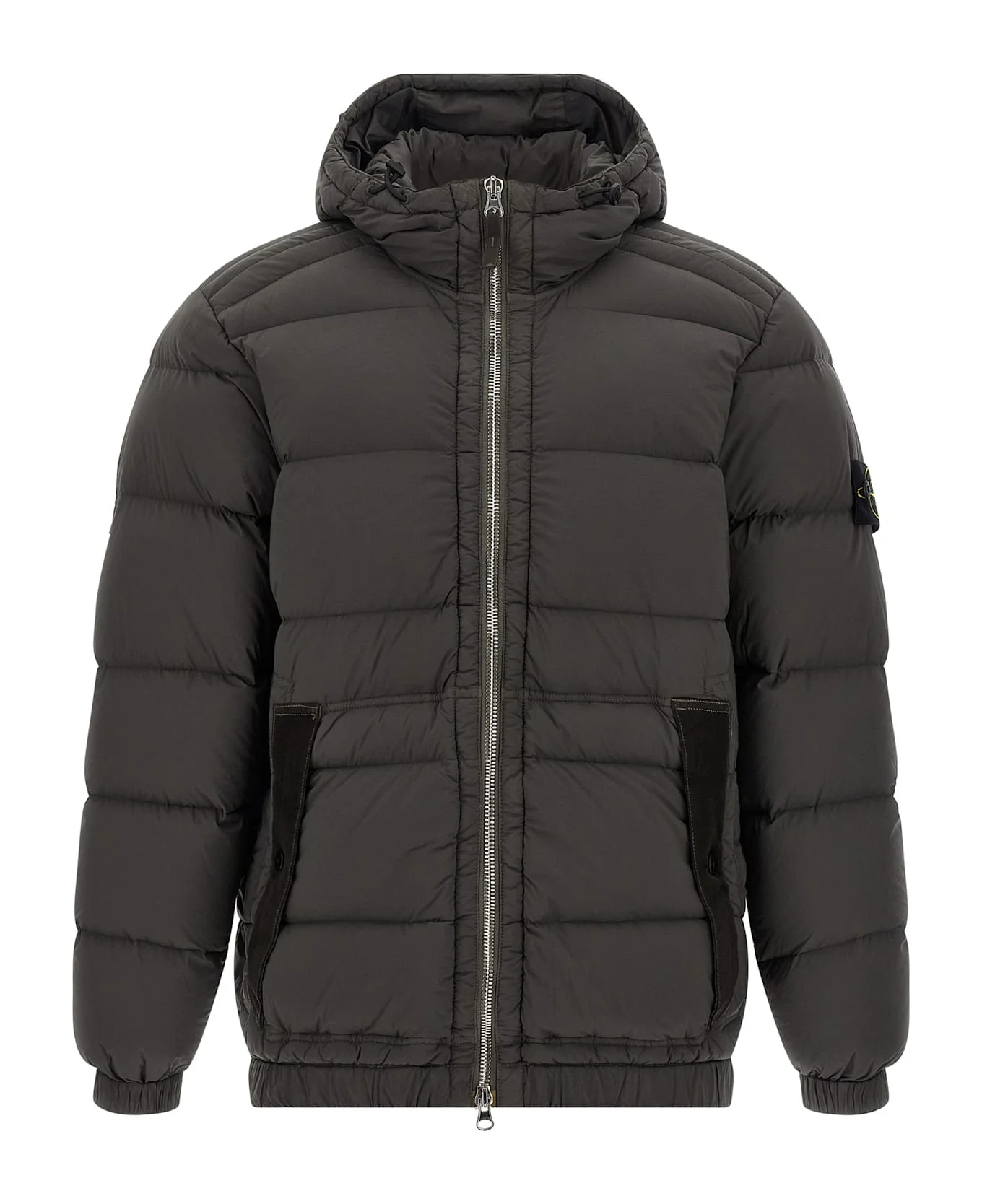 '4100040 Seamless Tunnel Nylon Down-TC' down jacket in lightweight nylon fabric with a single stretch layer garment-dyed with quilted drip treatment, goose down padding, adjustable hood, front zip closure, pockets, long sleeves with elastic cuffs and logo badge, elastic hem. Composition: 84% polyamide, 16% elastane Made in: Vietnam Color: GREY Size and fit: - True to size fit Model number: 4100040S0028V0062
