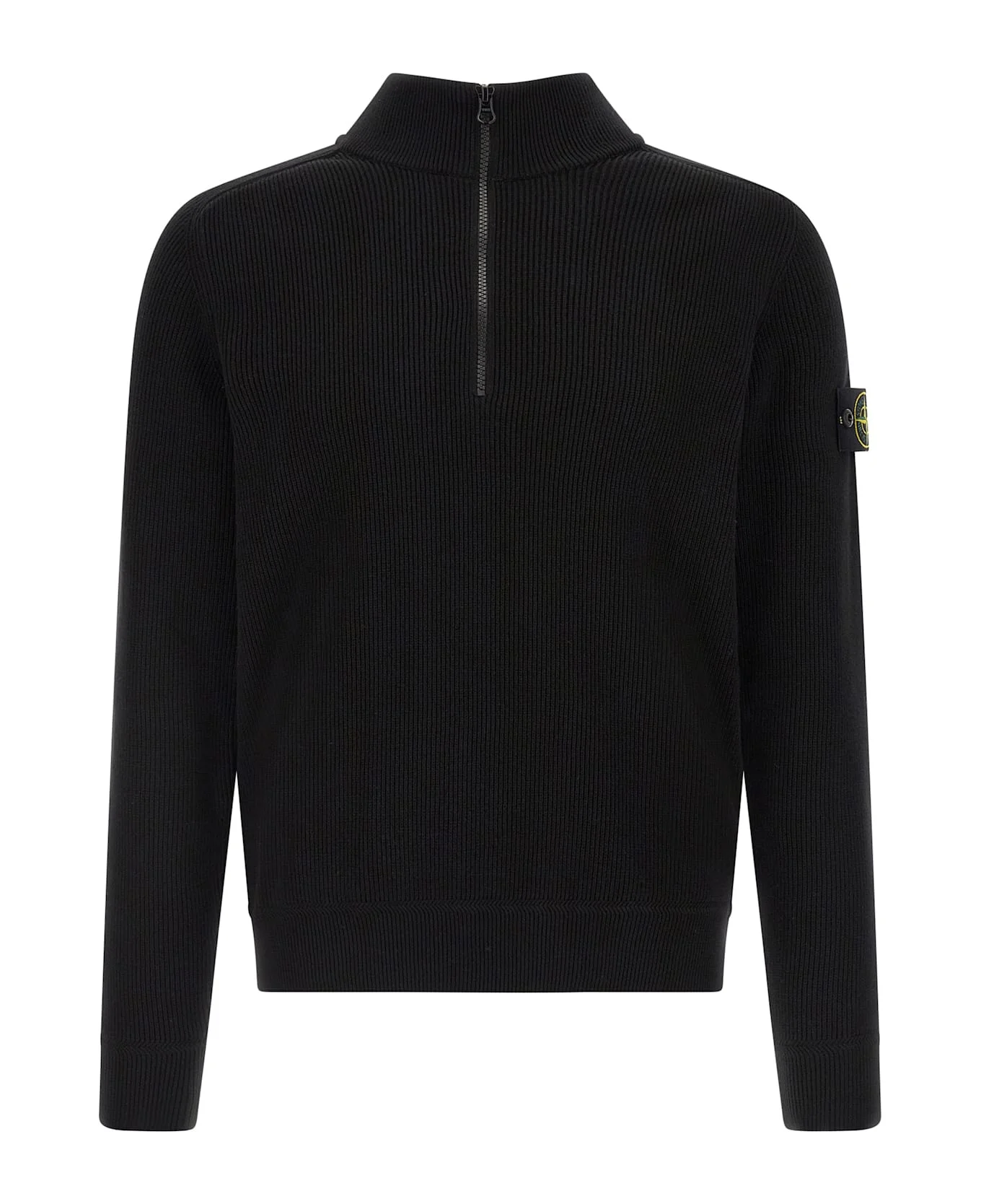 '5100124' ribbed cotton sweater with 12 fineness, high neck, half zip, long raglan sleeves with cuffs and logo badge. SUSTAINABLE: This product is made with organic cotton. Composition: 100% cotton Made in: Bulgaria Color: Black Size and fit: - true to size fit Model number: L1S155100124S00D8V0029