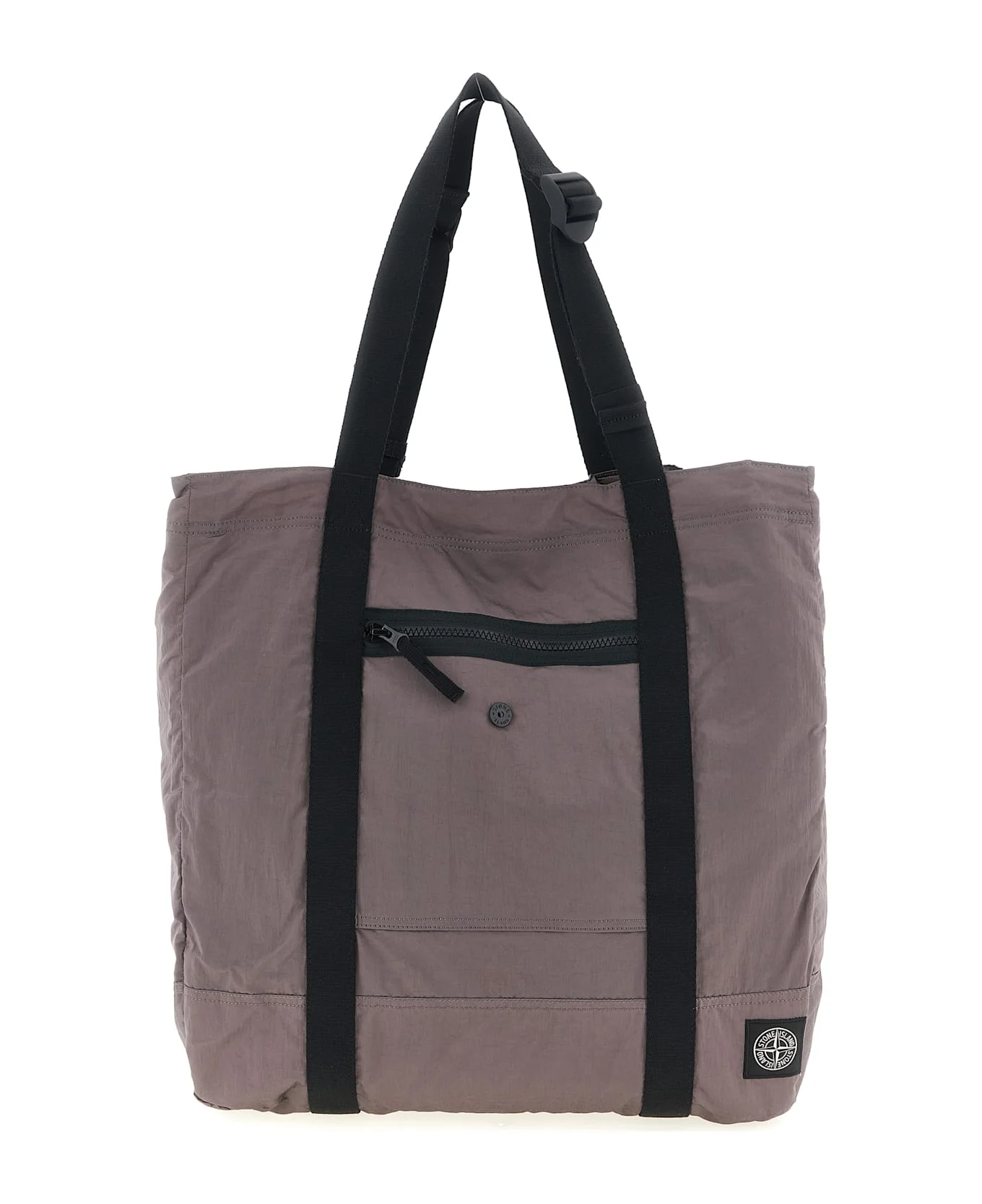 '9200012' shopping bag in garment-dyed Nylon Metal with a wrinkled-effect two-color recipe, polyurethane lining, 'Compass' logo patch and front zip pocket, internal snap button closure, double adjustable handle. SUSTAINABLE: This product is made of ECONYL regenerated nylon. ® Composition: 100% polyamide fibers Made in: Indonesia Color: Purple Size and fit: - W 44 x H 47 x D 10 cm Model number: L1S159200012S0251V008F
