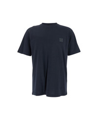 Blue Crewneck T-shirt With Logo Patch On The Front In Cotton Man