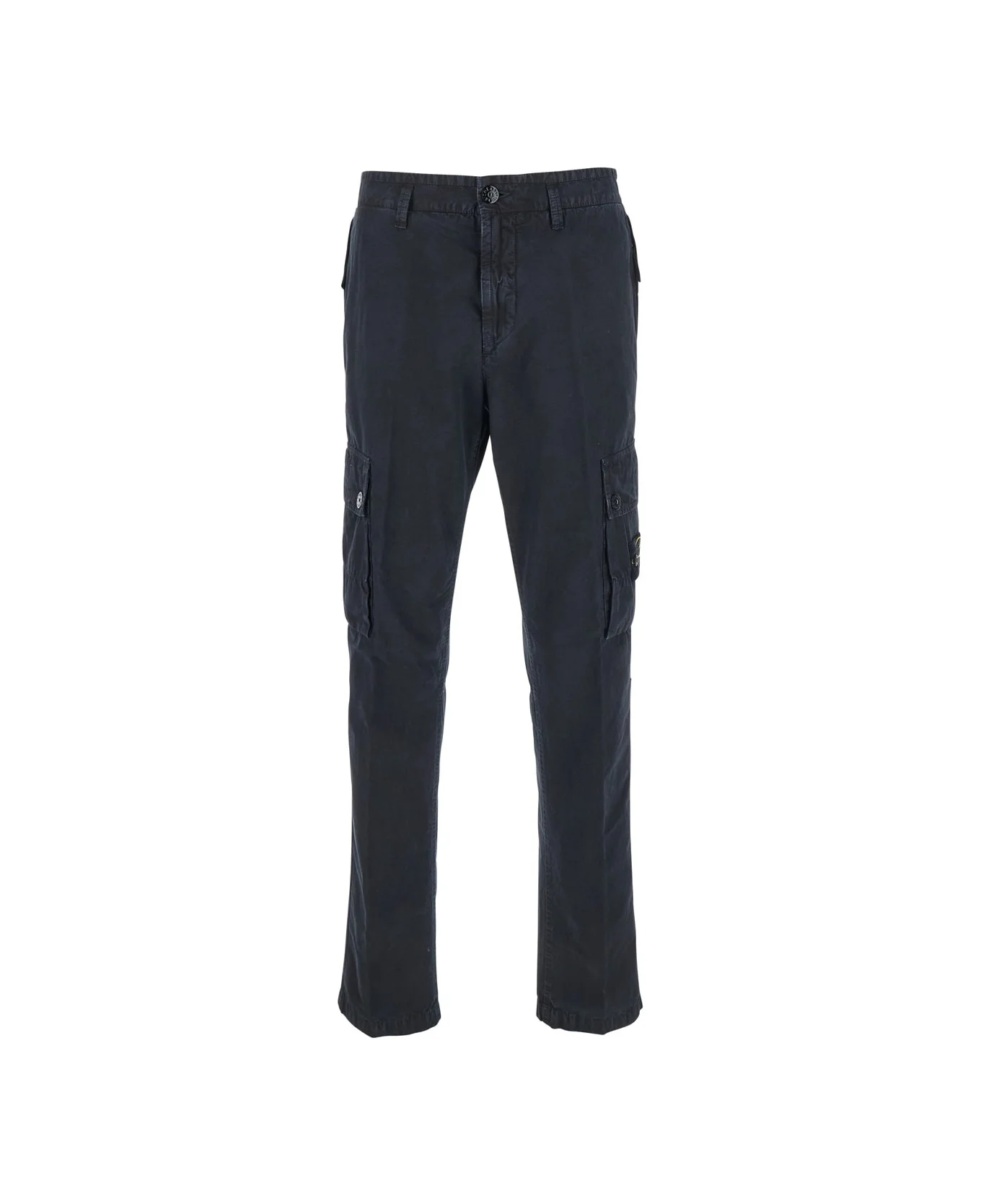 Blue Pants With Cargo Pockets And Applied Compass Logo In Cotton Man