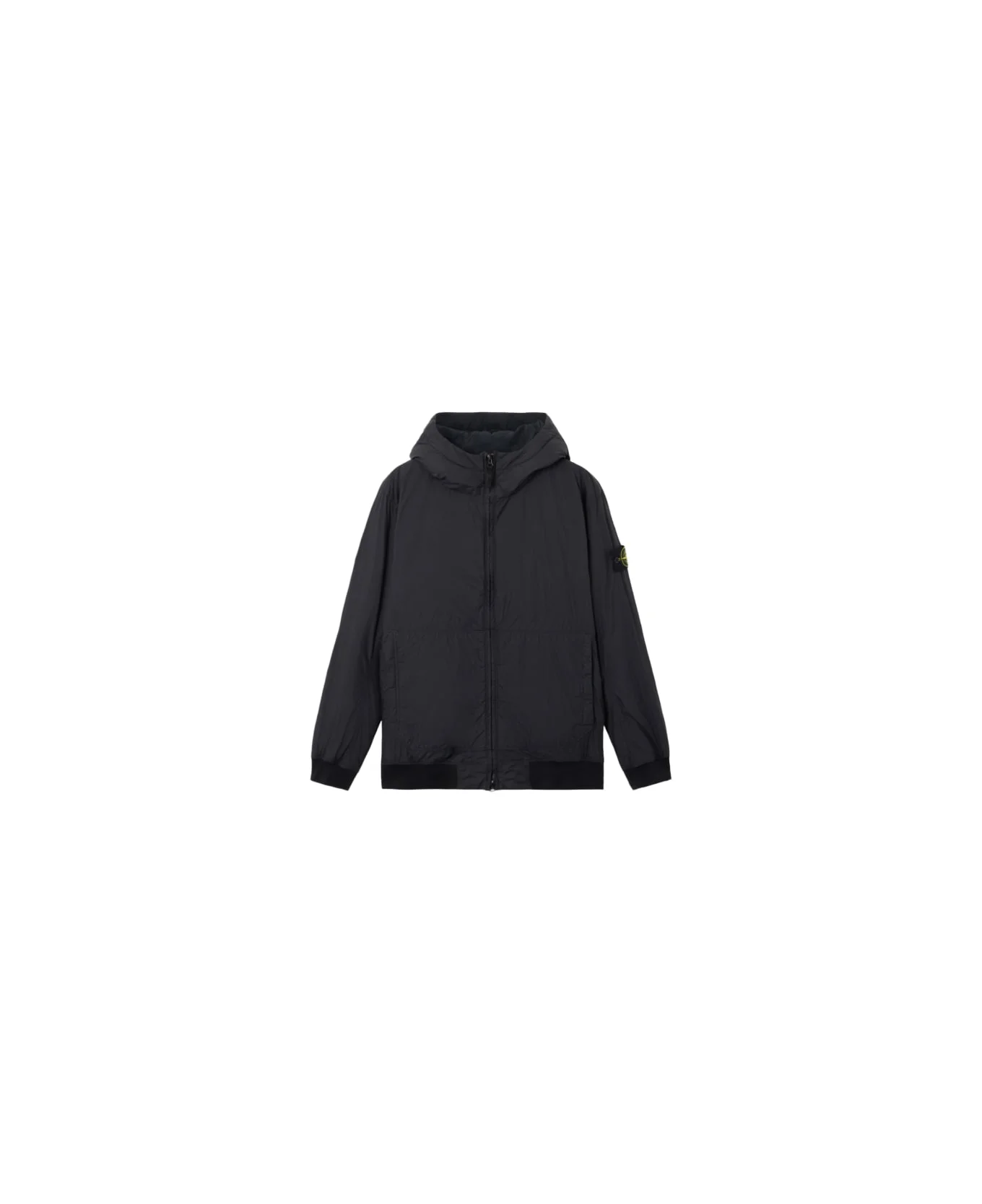 Black padded jacket in lightweight, recycled nylon rep with a tightly woven structure. The internal resin coating makes it windproof and slightly water-resistant. Thanks to the resin treatment, the color penetrates the material unevenly, giving the surface a wrinkled appearance. Filled with PrimaLoft®-TC, an exclusive blend of high-performance insulation fibers, 70% recycled, designed with Stone Island for garment dyeing. Garment dyed with the addition of a special anti-drop agent. Hood with fixed internal drawstring for an adjustable profile and a horizontal fit. Vertical patch pockets with hidden zips. Internal button pocket. Stone Island badge on the left sleeve. Elasticated ribbed cuffs and hem. Concealed two-way zip closure. Regular fit Composition: 100% Polyamide, Padding: 100% Polyester Made in Vietnam Made in: Vietnam Color: Black Model number: K2S154100013