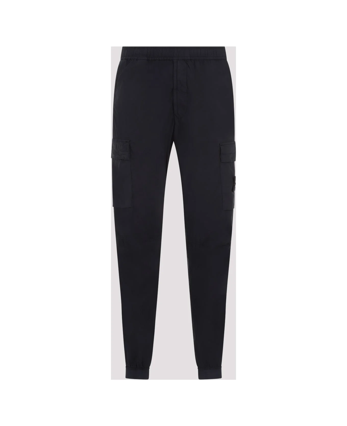 Stone Island Navy Blue Cotton Cargo Pants. Navy Blue Cotton blend, elastic waistband, cargo pockets, logo badge on side, elastic cuffs, regular fit. Made in: Romania Color: Navy Blue Model number: L1S153100031S0003V0020