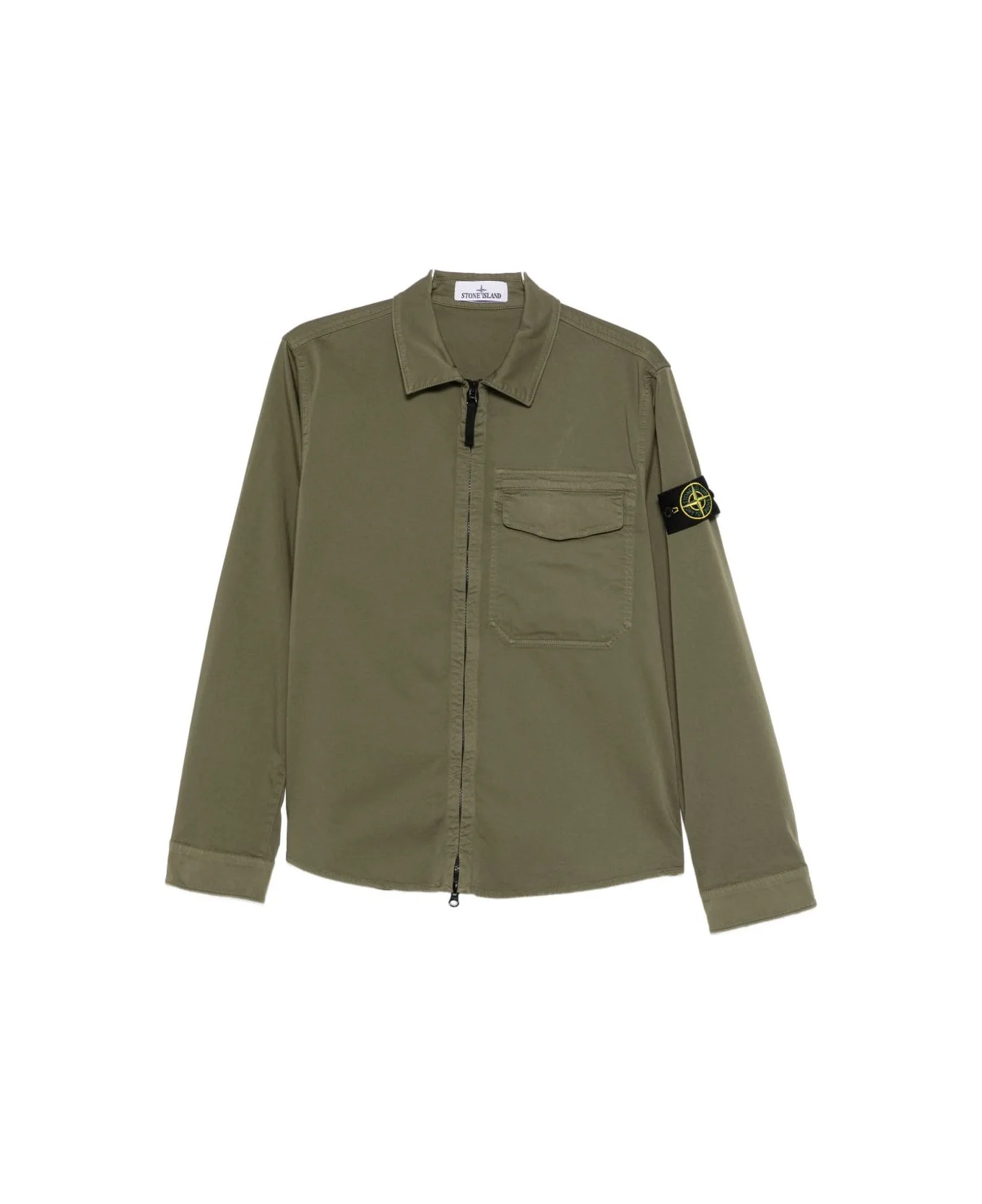 green chest pocket zip fastening long sleeves collar Composition: 2% Elastan, 98% Cotone Made in: Tunisia Color: Green Model number: L1S151200015S0012V005G