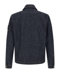 Cotton denim jacket with contrast stitching, concealed front button closure, pockets, long cuffed sleeves and tone-on-tone logo badge appliqued, unlined. SUSTAINABLE: This product is made of organic cotton. Composition: 100% cotton Made in: Romania Color: Blue Size and fit: - true to size fit Model number: L1S144100006S00J7VJ201