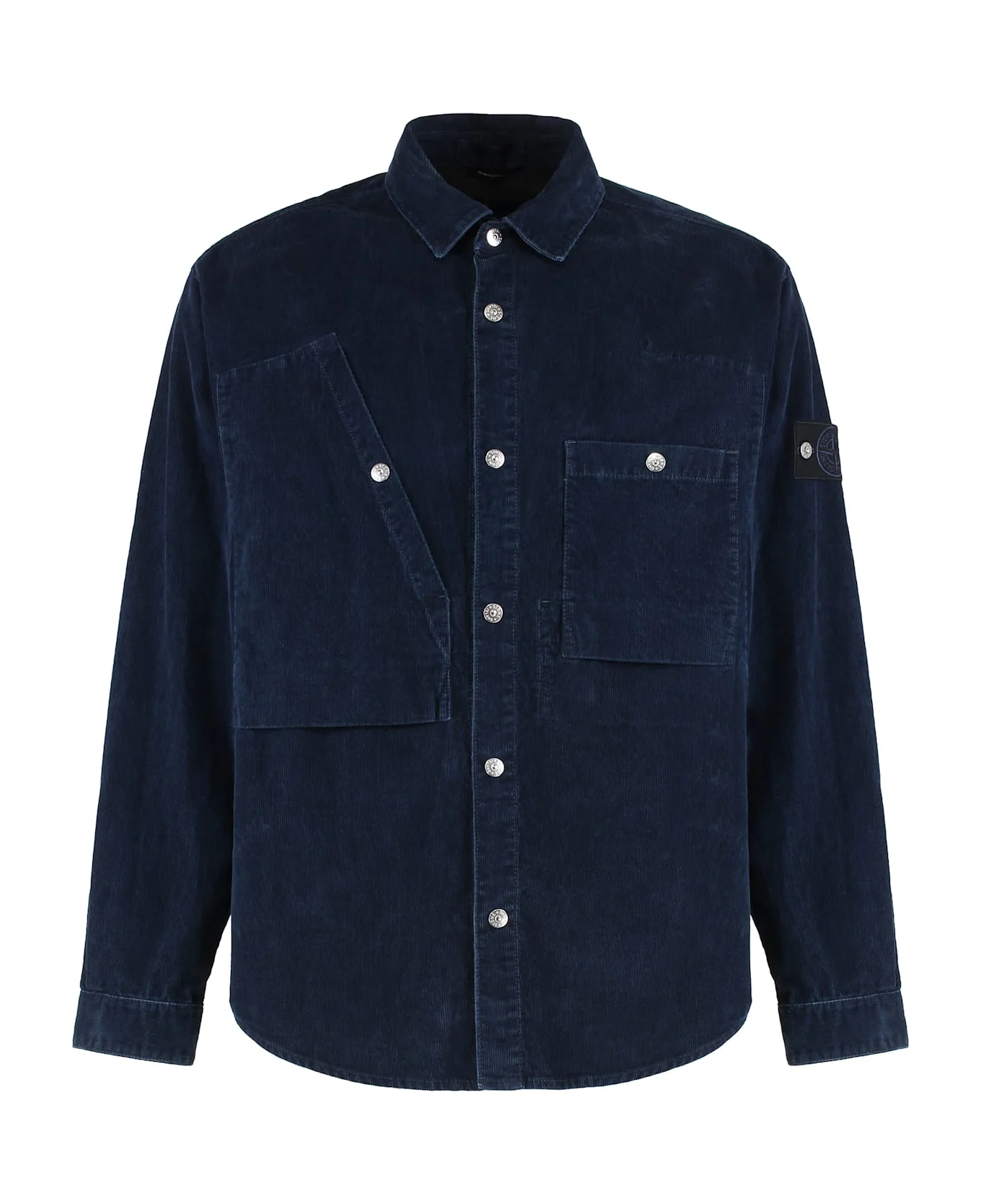 Overshirt in corduroy made with indigo dyed cotton and white polyester, featuring chest pockets, closure with snap buttons, badge stone island denim research. rinsed finish. 85% cotton, 15% polyester, 65% polyester, 35% cotton Composition: 85% % Cotton, 15% % Polyester, 65% % Polyester, 35% % Cotton Made in: Albania Color: blue Model number: S151100008S0J10V0021