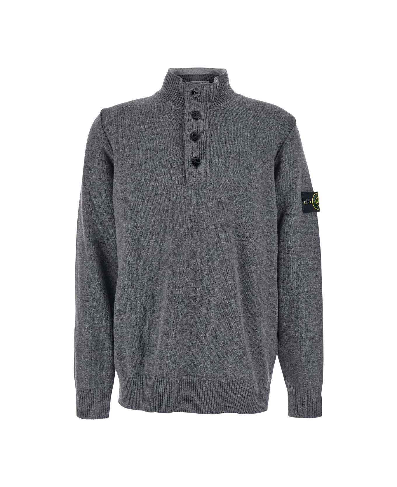 Grey High Neck Sweater With Button Closure On The Front And Logo Patch On The Sleeve In Wool Man