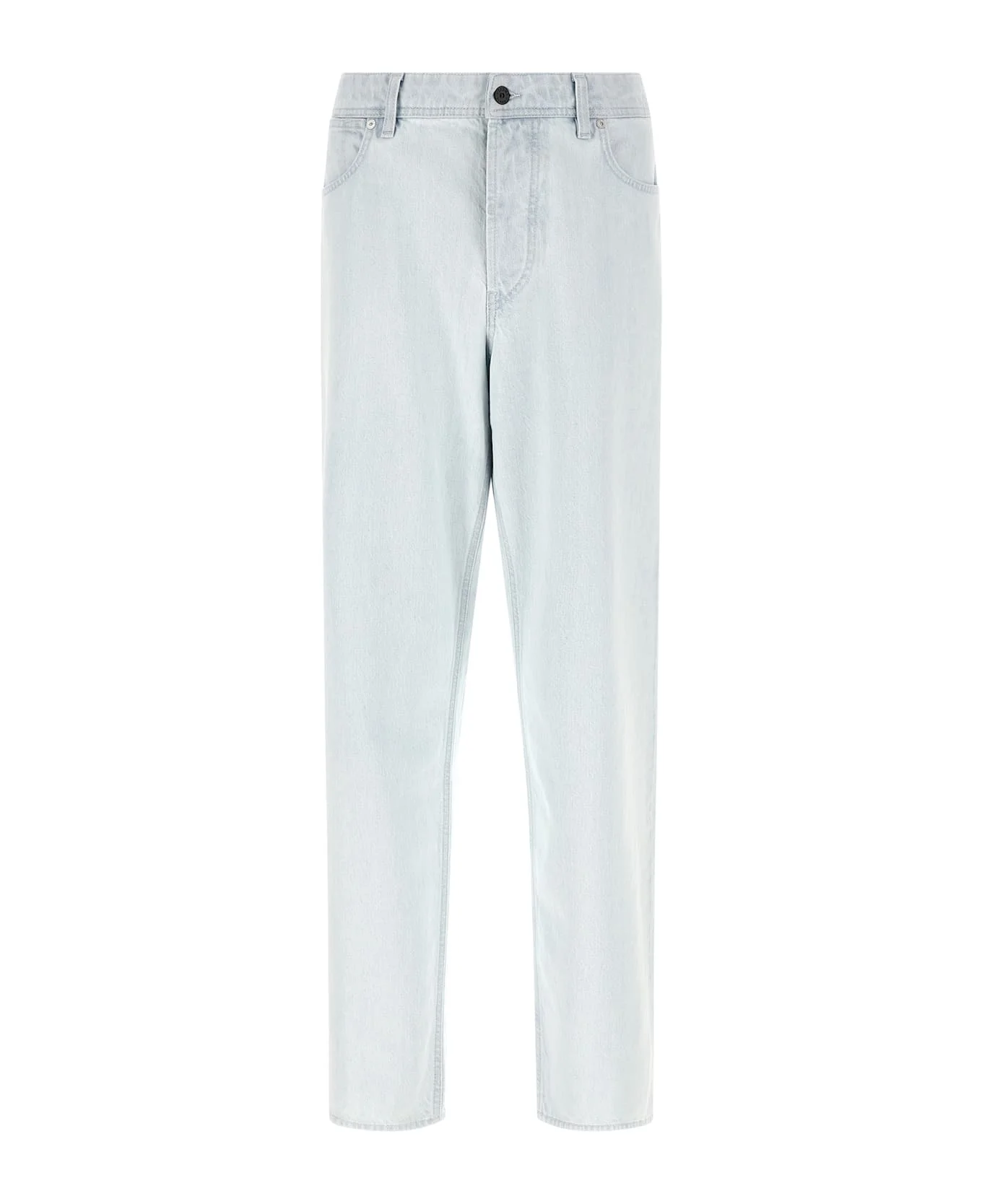 Indigo denim jeans in bleached cotton with wide and straight leg, front button closure, five pockets, and logo badge on the back. Composition: 100% cotton Made in: Romania Color: Light Blue Size and fit: - Loose fit Model number: L1S14J100006S00J9VJ203