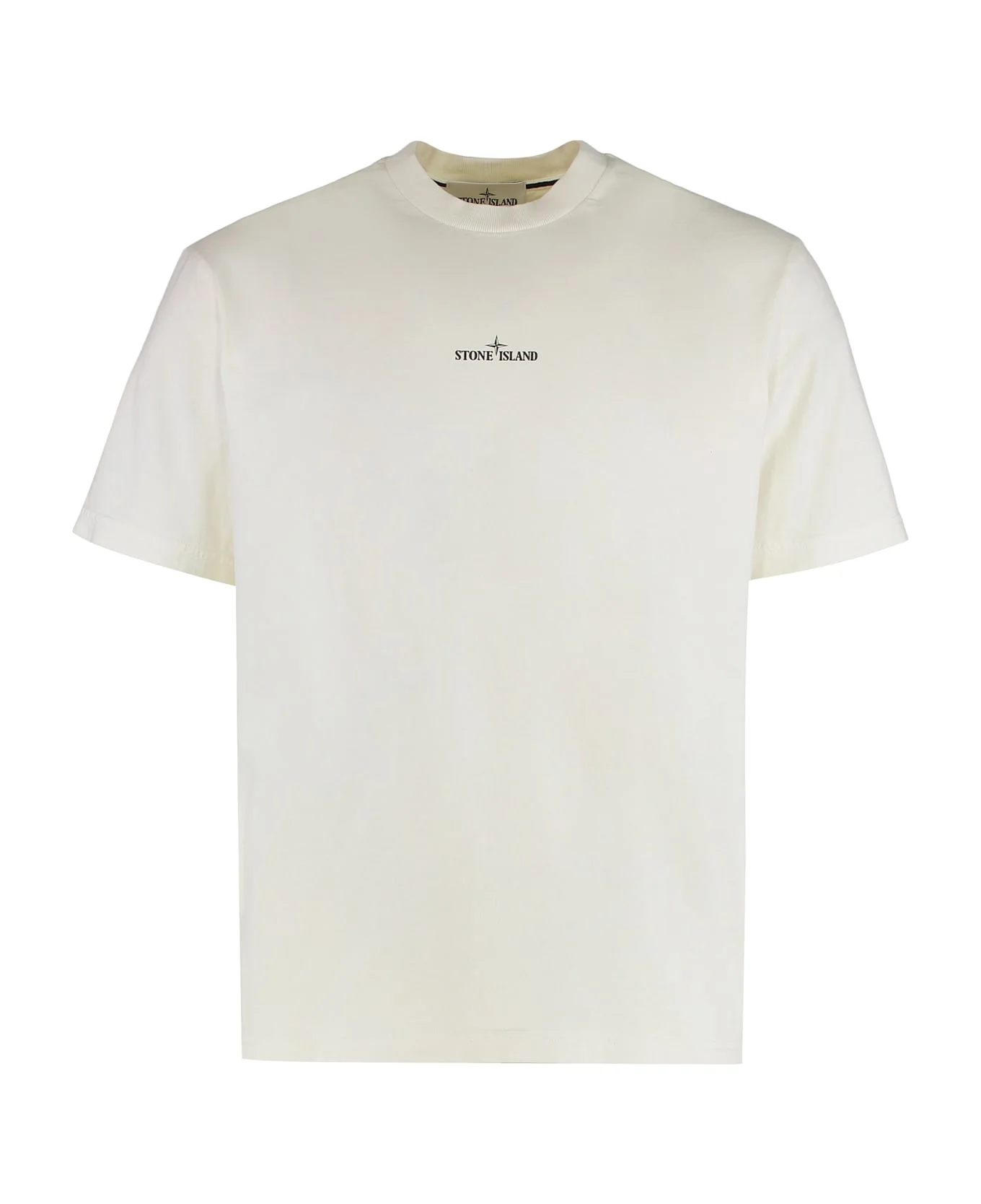 Short sleeve t-shirt in organic cotton jersey with stone island logo on the chest and compass print on the back. regular fit. 100% cotton Composition: 100% % Cotton Made in: Tunisia Color: Ivory Model number: S152100037S0241V0093