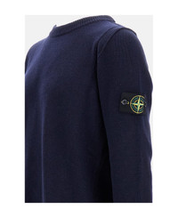 Crewneck knit with logo label on the arm. Ribbed cuffs and waist. Regular fit, blue color Composition: 80% Wool, 20% Polyamide Made in: Croatia Color: BLUE Model number: 5100072S00A3V0020