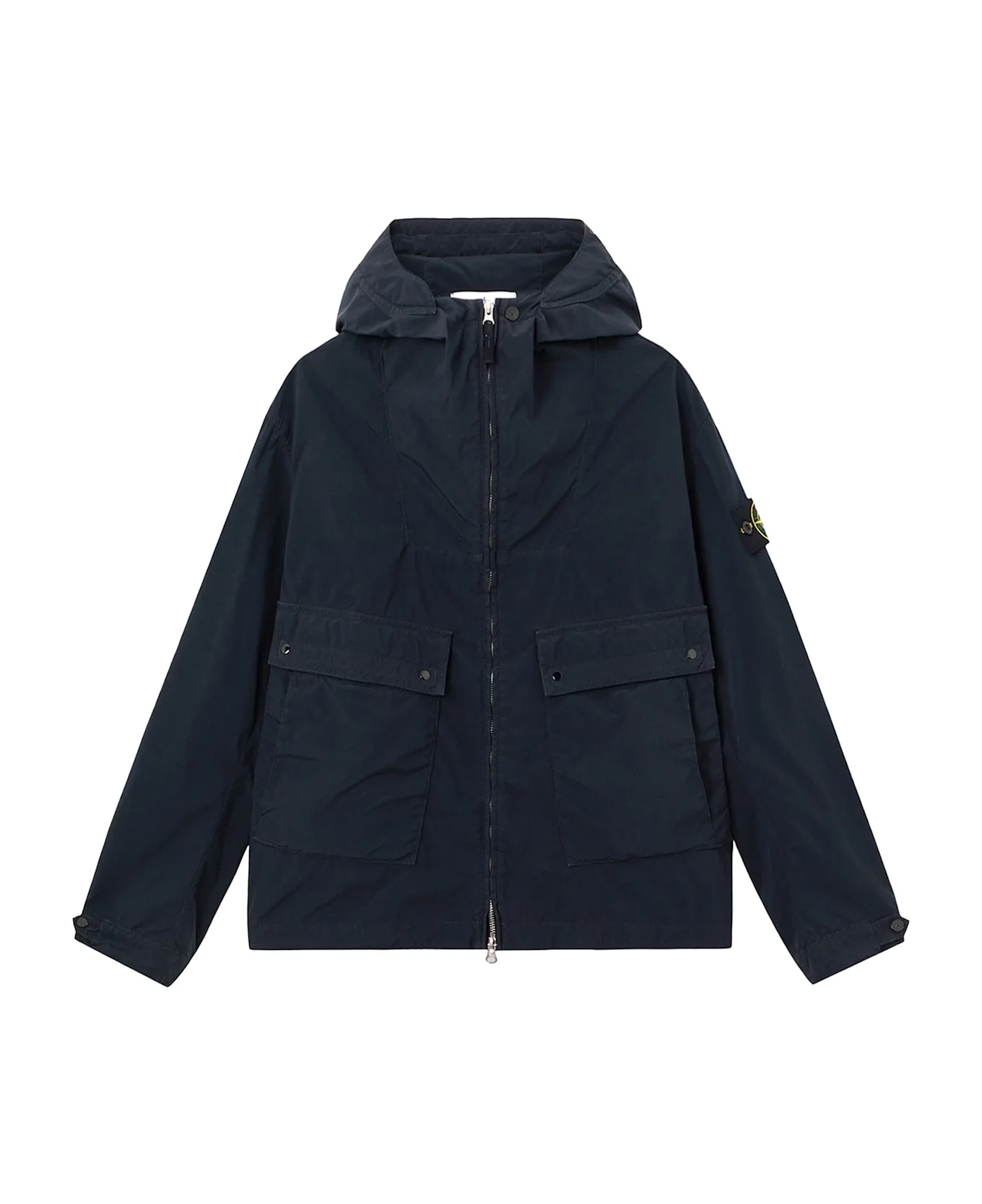 Zip closure with two-way zip Hooded Front pockets with flaps and buttons Iconic patch on the left sleeve Adjustable drawstring hem 64% polyester, 36% elastomultiester SKU: L1S154100052S0042V0020 Made in: Vietnam Color: Blue Model number: L1S154100052S0042V0020