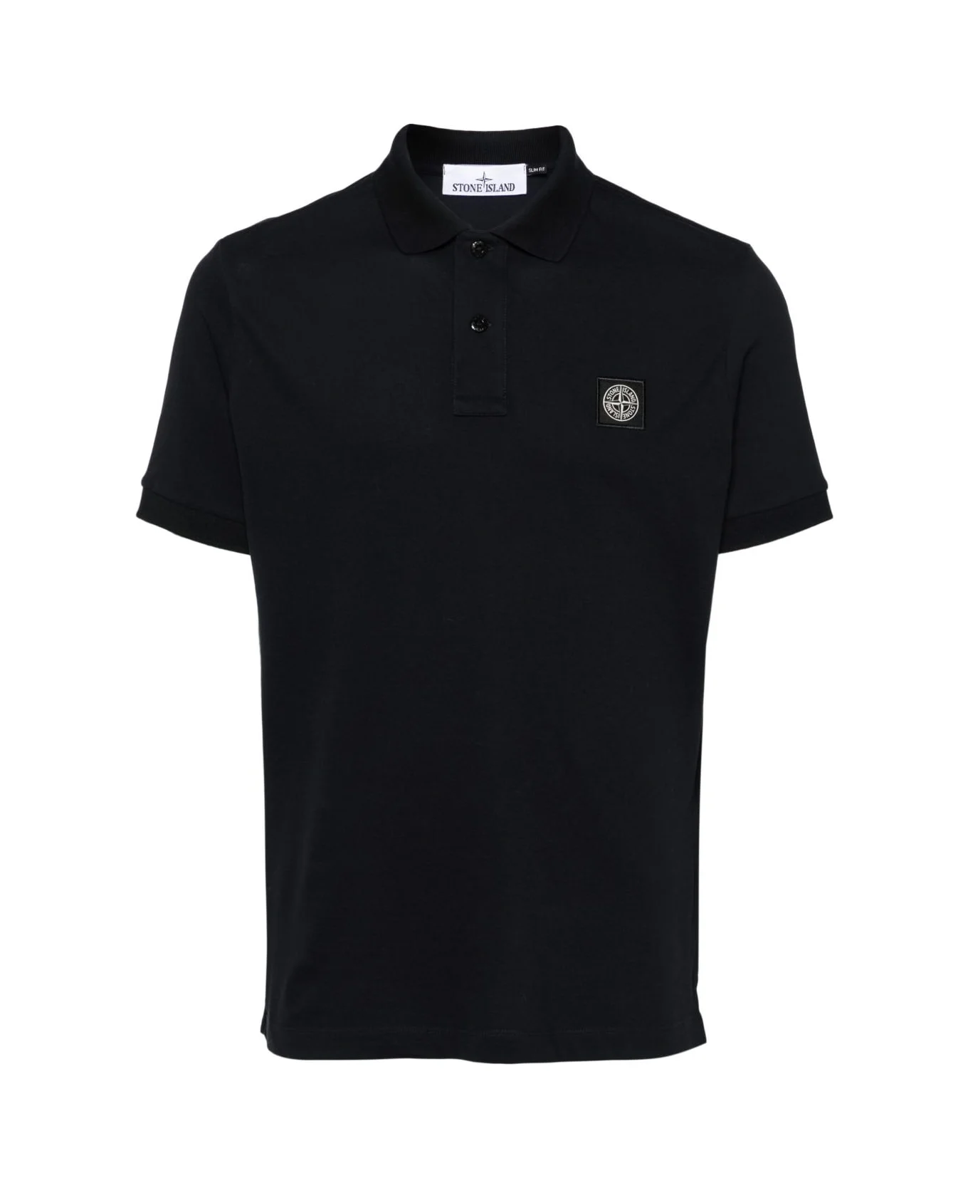 navy blue cotton blend signature Compass motif logo patch at the chest polo collar front button placket short sleeves with ribbed cuffs short side slits straight hem Composition: 5% Elastan, 95% Cotone Made in: Turkey Color: Blue Model number: L1S152200008S0017V0020