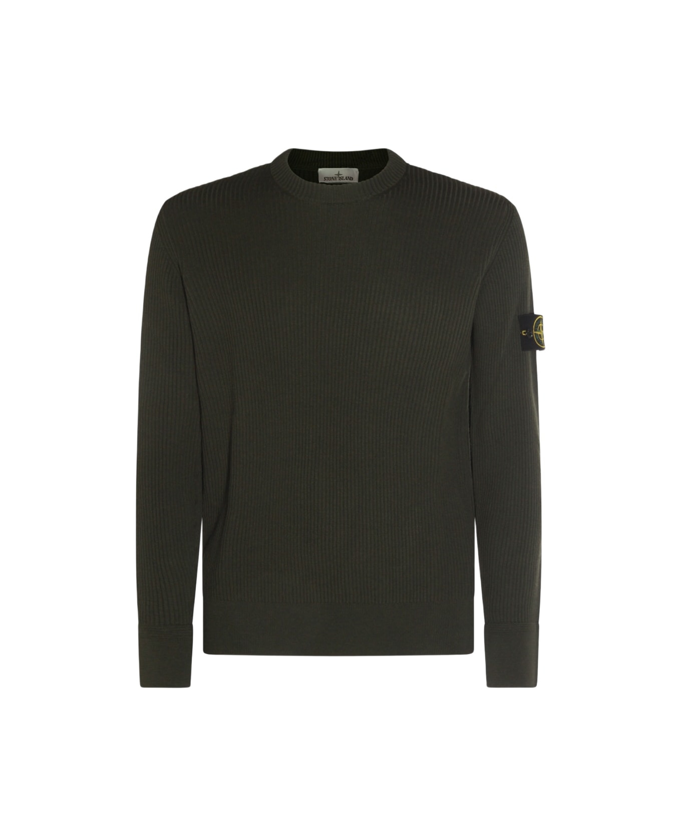 Military green wool knitwear from Stone Island featuring round collar, logo patch and soft vestibility. Composition: _, 100% Vw Made in: Tunisia Color: MILITARY GREEN Model number: K2S155100053S00C2V0054
