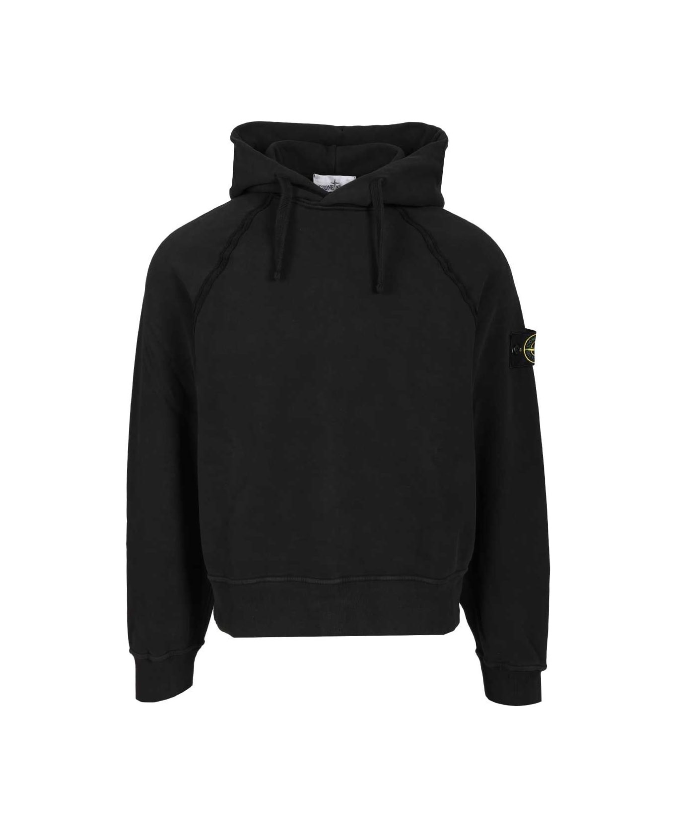 Drawstring hood. Oversized raglan sleeves, overlock seams, and frayed cuffs. Stone Island badge on the left sleeve. Elasticated ribbed cuffs and hem. Oversized fit. Composition: 100% cotton Made in: Romania Color: Black Model number: K2S156100023S0A20V0029