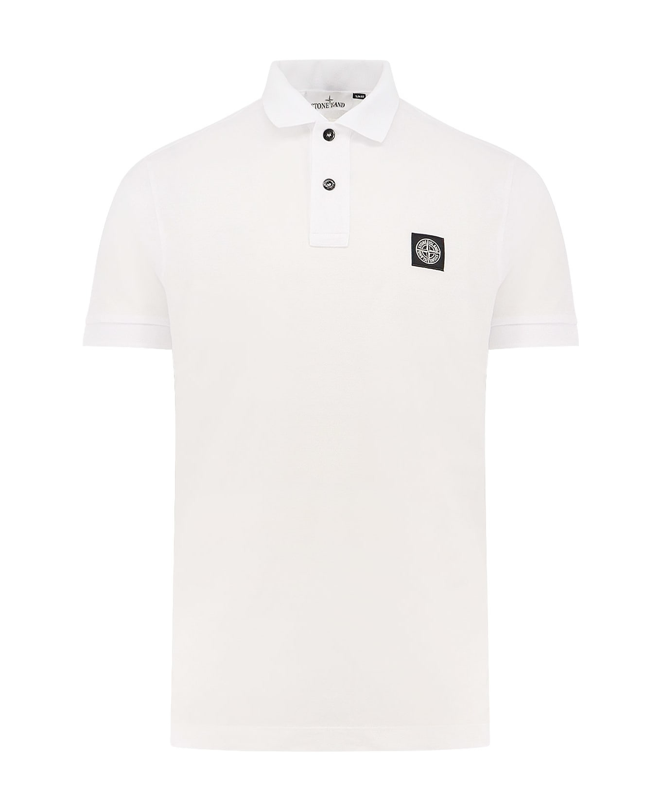 Two-button clos Classic ribbed collar Short sleeve Side slits Stone Island patch on the front 95% Organic Cotton, 5% Elastane SKU: K2S152200005S0017V1001 Made in: Moldova Color: White Model number: K2S152200005S0017V1001