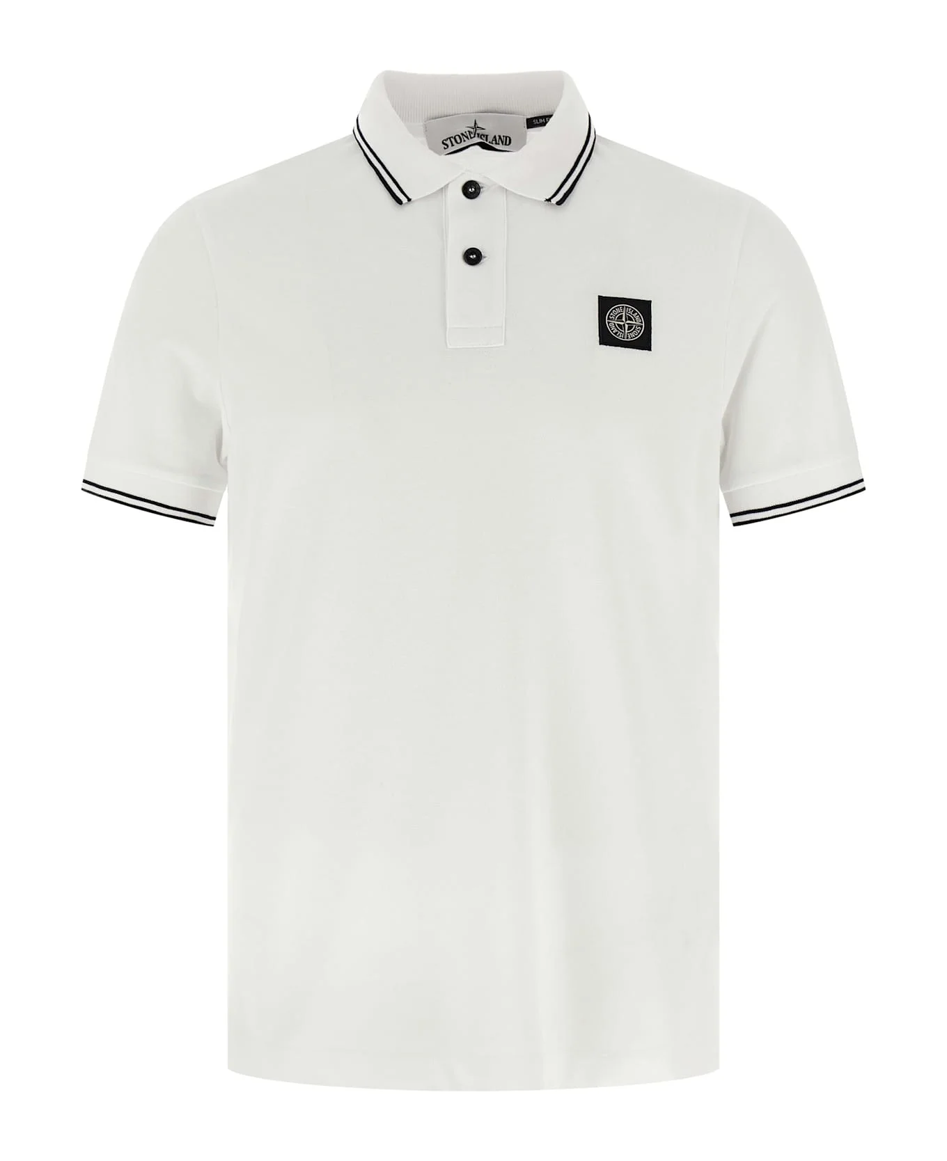 Pique cotton polo shirt with contrast details, front logo patch, collar and buttons, short sleeves, side slits. Composition: 95% cotton, 5% elastane Made in: Moldova Color: White Size and fit: - True to size fit Model number: K2S152200007S0018V1001