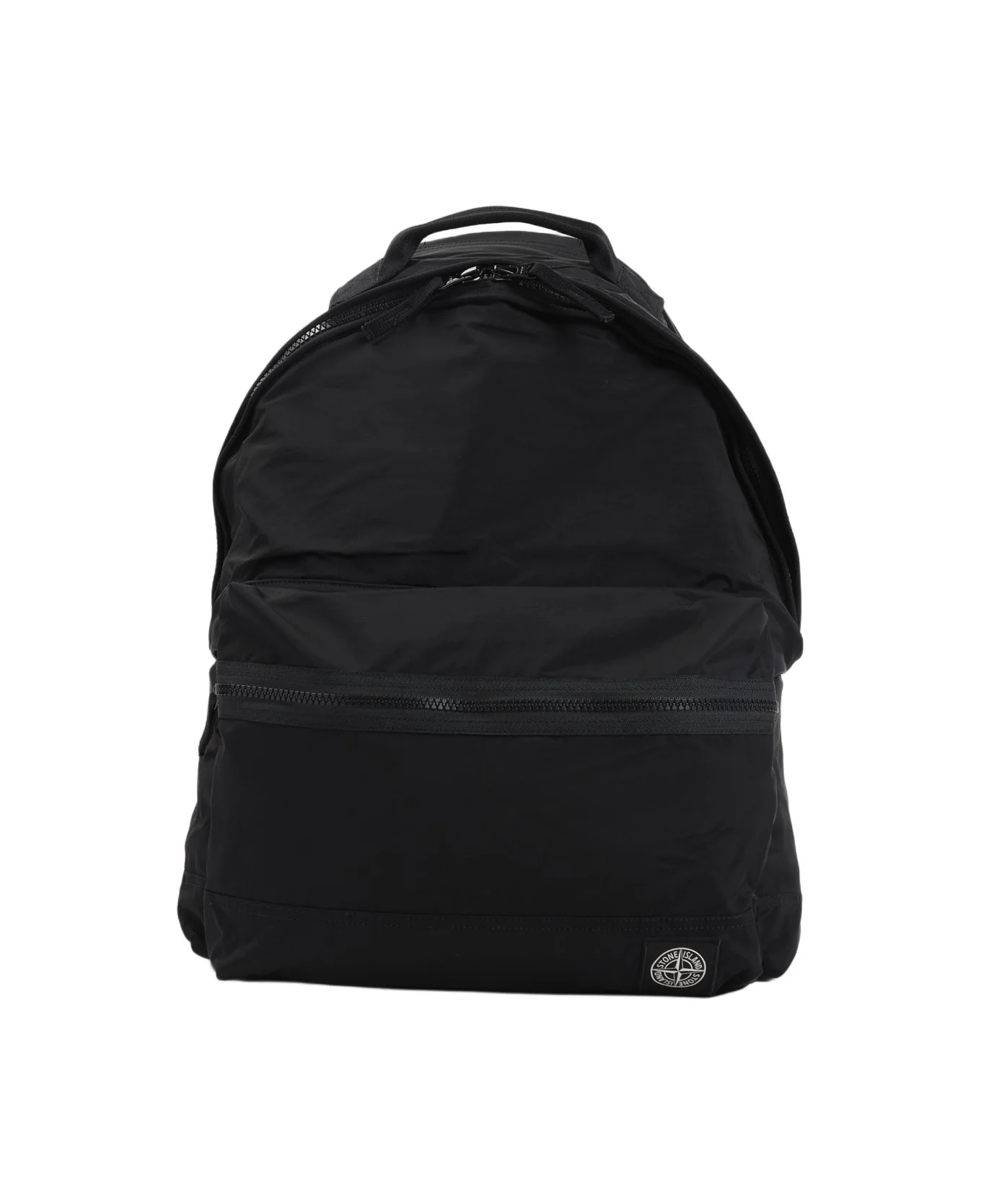 Moncler Black Polyamide Backpack. Crafted from black ECONYL® regenerated yarn with polyurethane coating, it features two-way zip fastening, front zip pocket with logo patch detail, top handle, adjustable back shoulder straps, inner compartment, nylon lining. Made in: Indonesia Color: Black Size and fit: - W:31cm H:43cm D:14cm Model number: L1S159200010S0251V0029