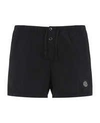 Stone Island Black Polyamide Shorts. Black tech fabric, elastic waistband and drawstring, front button fastening, side pockets, front logo patch detail, pocket on the back, straight hem. Made in: Indonesia Color: Black Model number: L1S15B100003S0043V0029