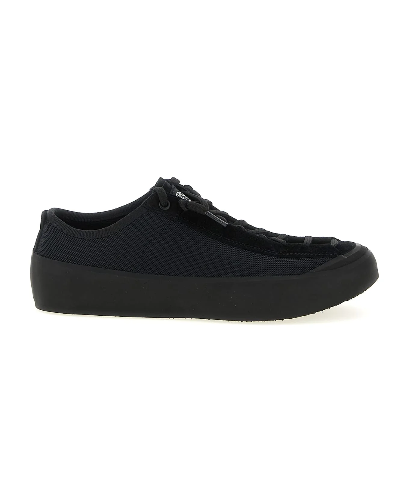 'S100010' polyester mesh sneakers with tone-on-tone suede details, tongue with 'Compass' logo patch, lace-up closure, mudguard and rubber sole. Composition: 100% calfskin leather (Bos Taurus) Made in: Italy Color: Black Size and fit: - EU MEN Model number: L1SFWS100010S0448V0029