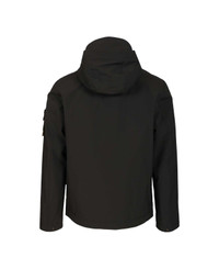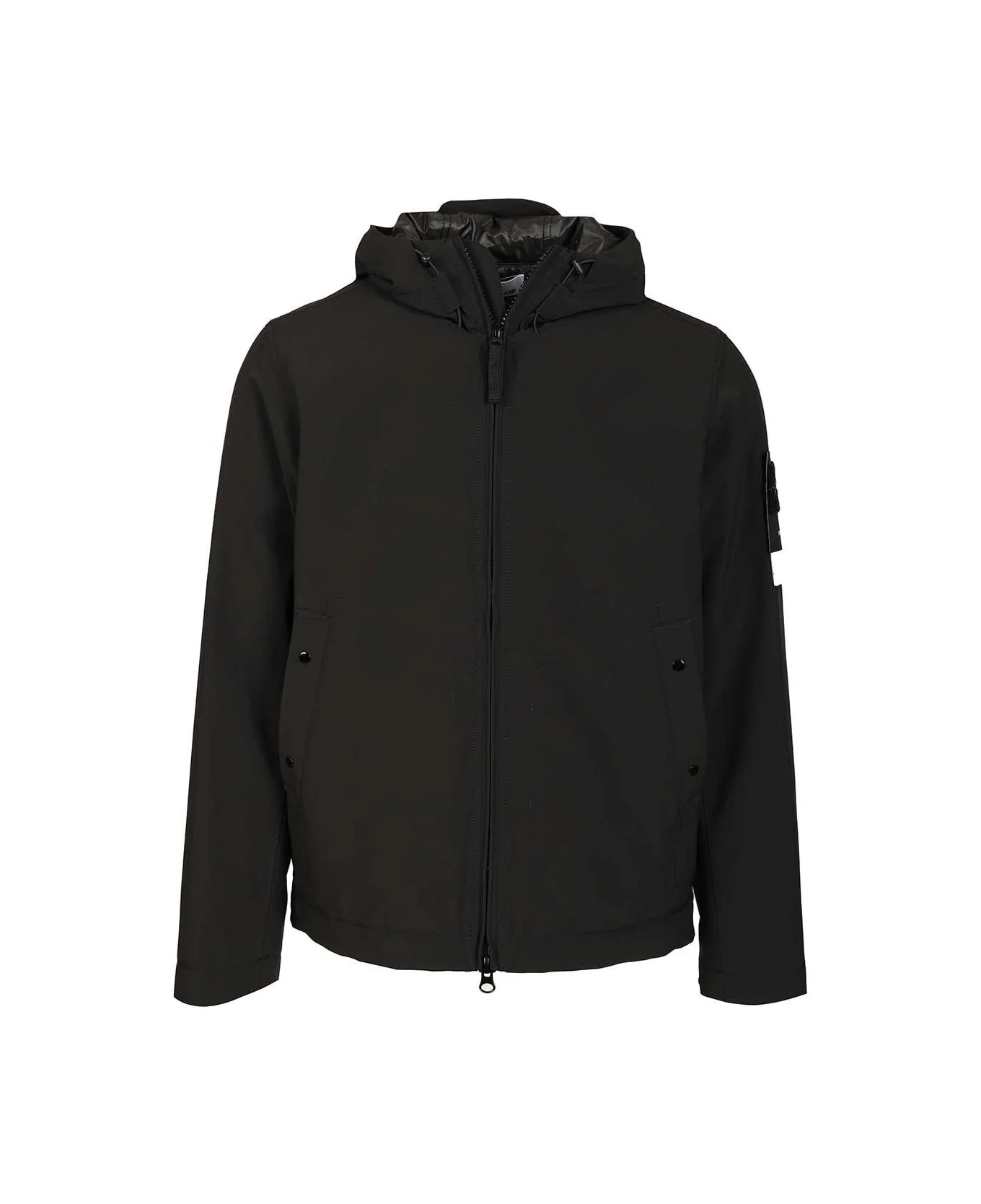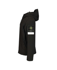 Hooded jacket in 3-layer technical fabric. Hood with visor and drawstring around the perimeter with a channel in the collar. Two slanted pockets with two snaps and stitched trim. Inside pocket with button and embroidered Stone Island Compass logo. Stone Island badge on the left sleeve. Snap-button cuffs. Drawstring hem. Concealed two-way zip closure. Composition: 92%POLIESTERE + 8% ELASTAN Made in: Vietnam Color: Black Model number: K2S154100086S0A27V0029