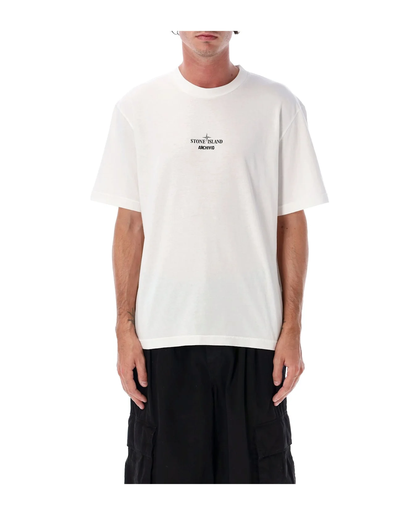 The Archivio T-shirt By Stone Island Combines Minimalist Design With Bold Graphic Elements. Crafted From Organic Cotton Jersey, It Features A Ribbed Crew Neck, Short Sleeves, And A Regular Fit. The Front Showcases The Brand s Logo Along With archivio Embroidery, While The Back Is Defined By A Striking Oversized Graphic Print, Adding A Contemporary Urban Edge To This Essential Piece. Ribbed Crew Neck Short Sleeves Stone Island Logo And archivio Embroidery At Front Large Graphic Print At Back Regular Fit Andrea Is 1,90 M And Wears Size L Composition: 100% cotton Made in: Tunisia Color: WHITE Model number: S152100037S0091V0001
