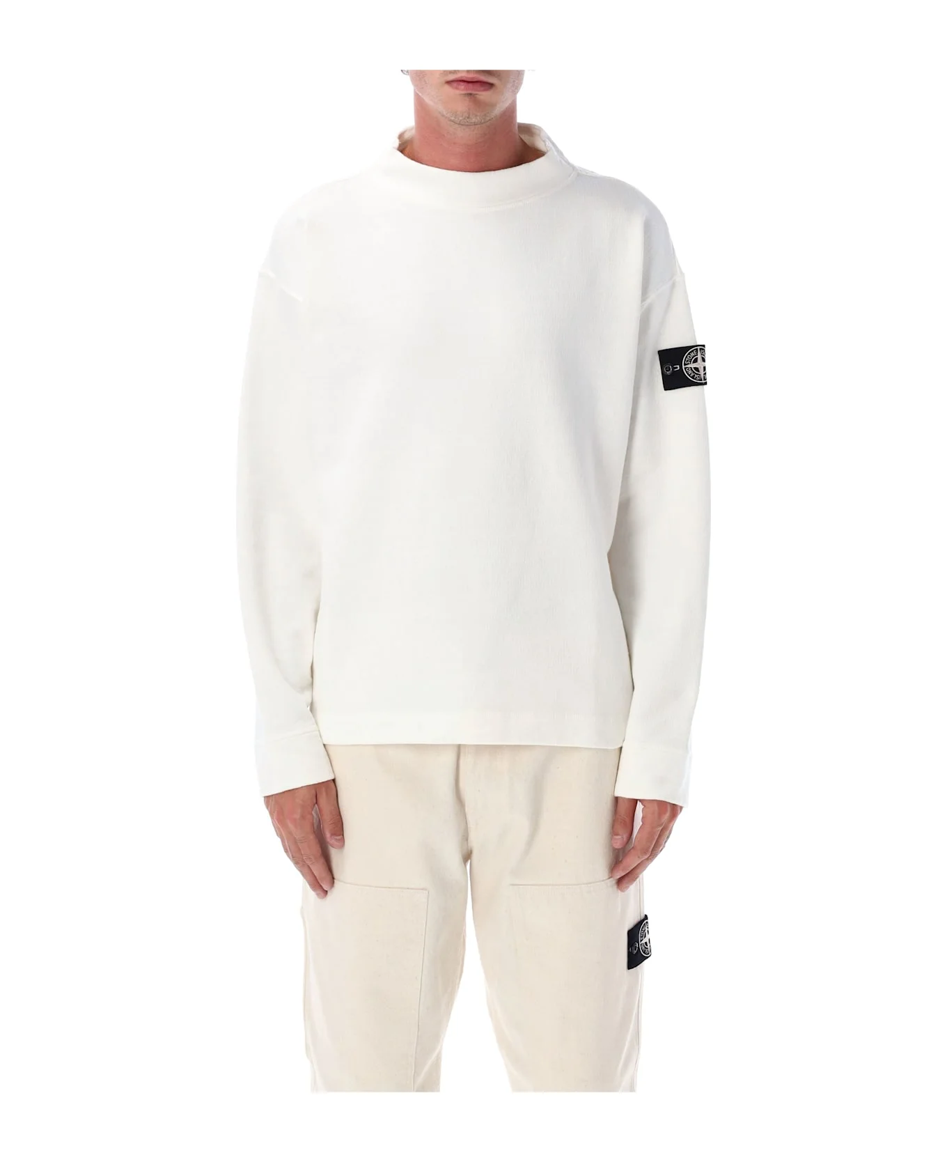 Part Of The Stone Island Raw Beauty Project, This Sweatshirt Is Crafted From Regenerated Cotton With A Distinctive Knit-look Texture. Featuring A Crater Neckline And Archival-inspired Prints At The Elbows, It Blends Innovation And Heritage. The White Research Badge And Lunette Detail At The Back Add Refined Structure To Its Utilitarian Design. Made In Part With Recycled Cotton Crater Neckline With Inner Lunette Archival-inspired Elbow Prints White Stone Island Fabric Research Badge On Left Sleeve Flat Cuffs And Hem Regular Fit From The Raw Beauty Collection Andrea Is 1,90 M And Wears Size L Composition: 100% cotton Made in: Italy Color: NATURAL WHITE Model number: S156100001S00T2V0099