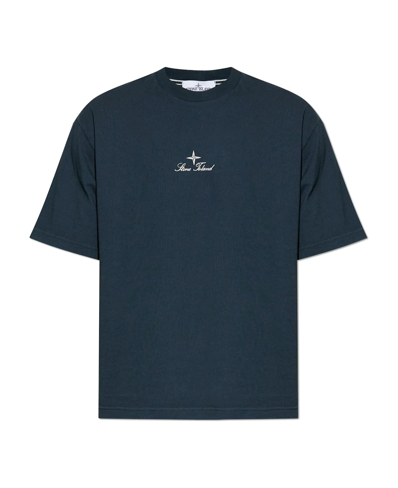 Distinguished by its understated sophistication, this navy blue T-shirt by Stone Island epitomizes contemporary elegance. Thoughtfully crafted from high-quality, densely woven cotton, the matte finish and medium-weight fabric impart a supremely soft hand-feel and enduring comfort. Its classic silhouette featuring a crew neck, short sleeves, and an easy, relaxed fit provides seamless versatility. The piece de resistance lies in its refined details: an intricately embroidered logo with a compass motif and Stone Island lettering graces the chest, rendered in pristine white. The back is adorned with a striking, large-scale decorative graphic inspired by intersecting lines and gridwork, punctuated by additional branding including Japanese script further enhancing its distinctive character. Each element pays homage to the brand's legacy of relentless textile innovation and superior design. Why choose this product? Exquisite, durable cotton ensures elevated comfort Iconic embroidered branding demonstrates sophistication Exclusive design with unique rear graphic and international flair Versatile cut suitable for refined or casual ensembles Produced by a trailblazing, revered Italian brand Composition: 100% Cotton 100% Cotton Made in: Tunisia Color: Blue Model number: K2S152100021S0234V0020