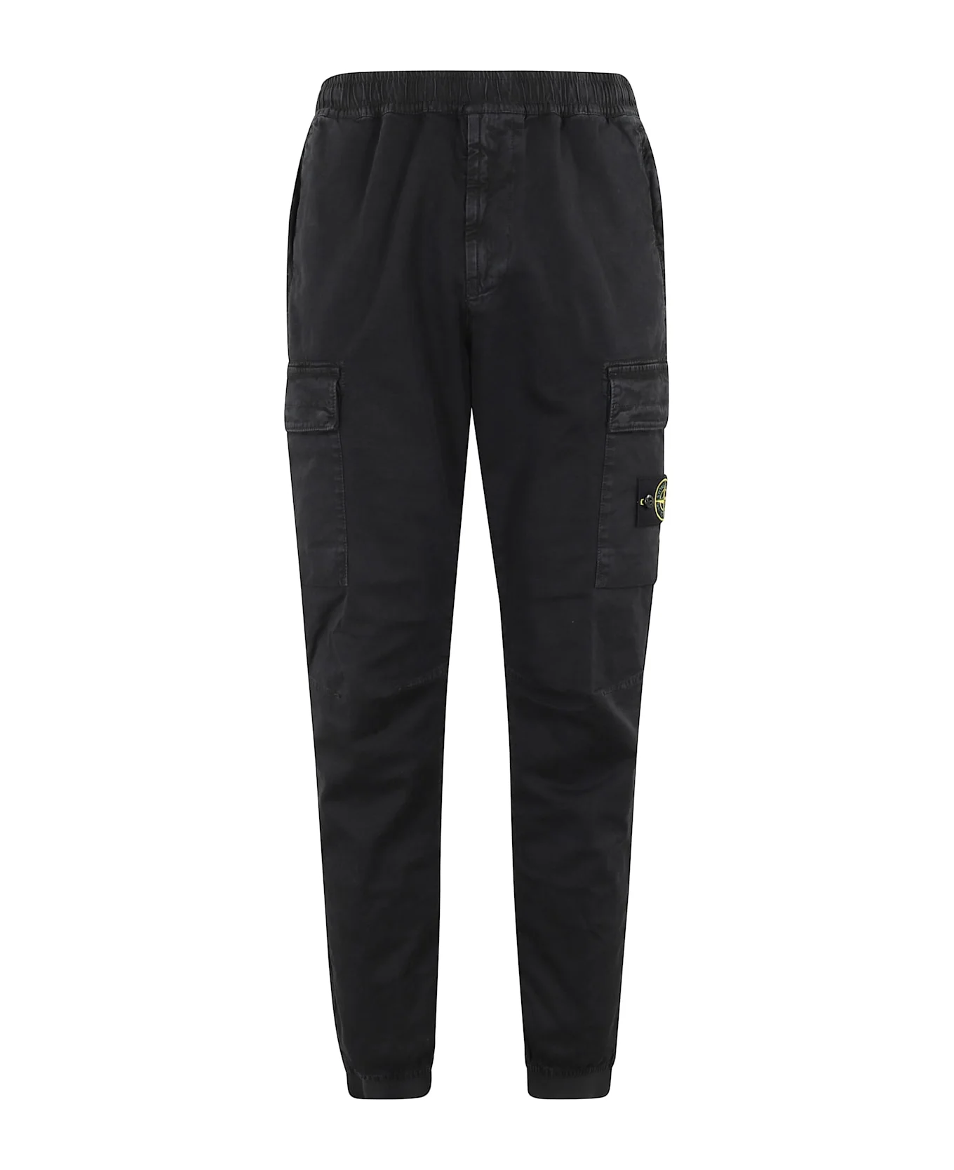 Pants - Stone island - Cargo model - Black color - Zippered side pockets - Flap pockets - Removable side logo patch - Elastic waistband - Front zipper closure. Made in: Romania Color: Black Model number: K2S153100033