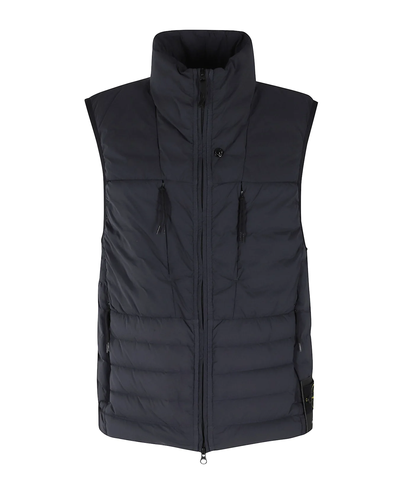 Seamless Vest - Stone Island - Blue color - Quilted fabric - High collar - Side zipper pockets - Front zipper closure. Made in: Vietnam Color: Navy Blue Model number: K2S15G100004