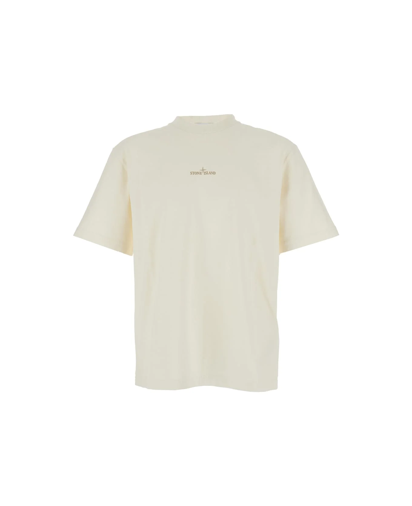 White Crewneck T-shirt With Logo Lettering On The Front And Maxi Logo Print On The Rear In Cotton Ma