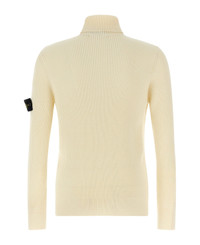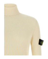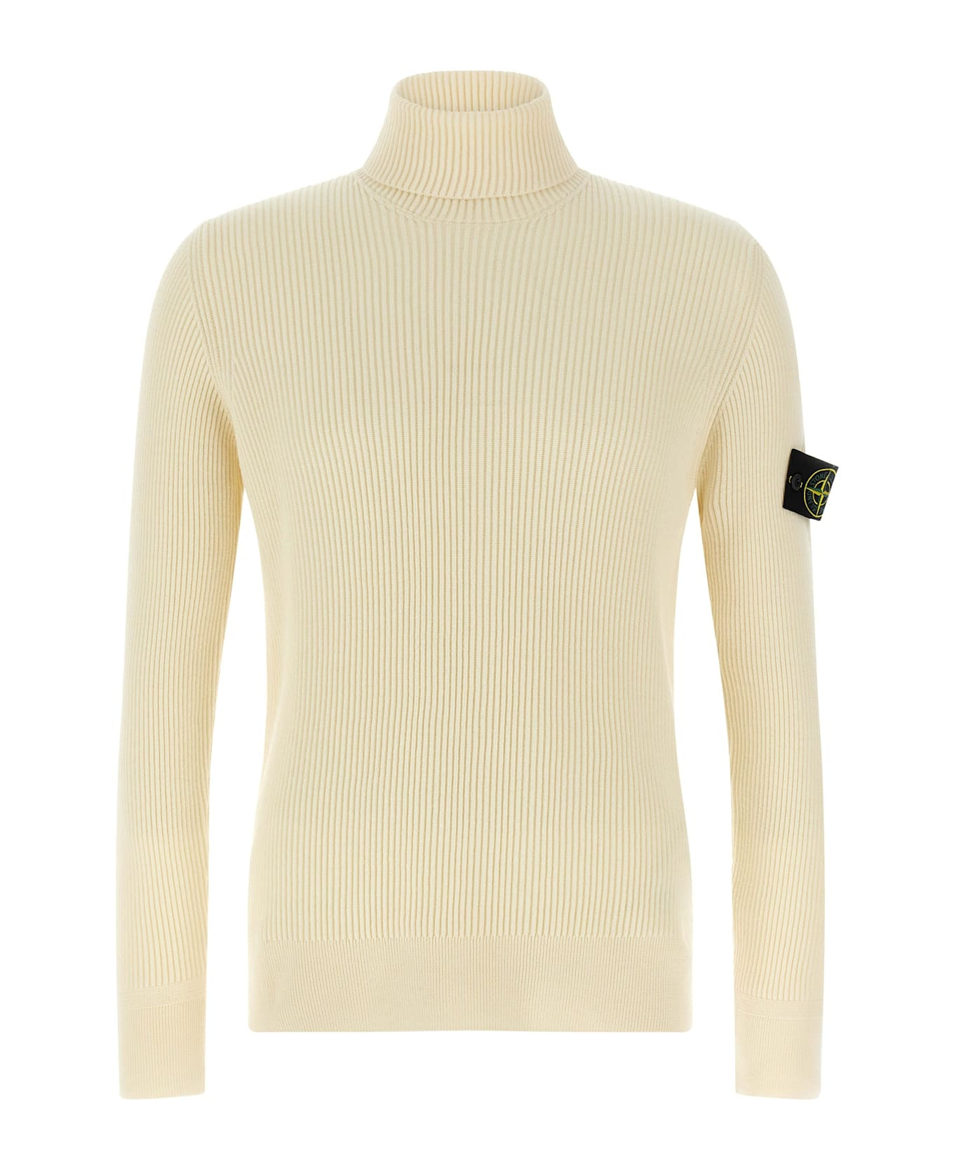 Ribbed wool sweater, high neck, side logo badge. Composition: 100% virgin wool Made in: Tunisia Color: White Size and fit: - True to size fit Model number: K2S155100052S00C2V0093