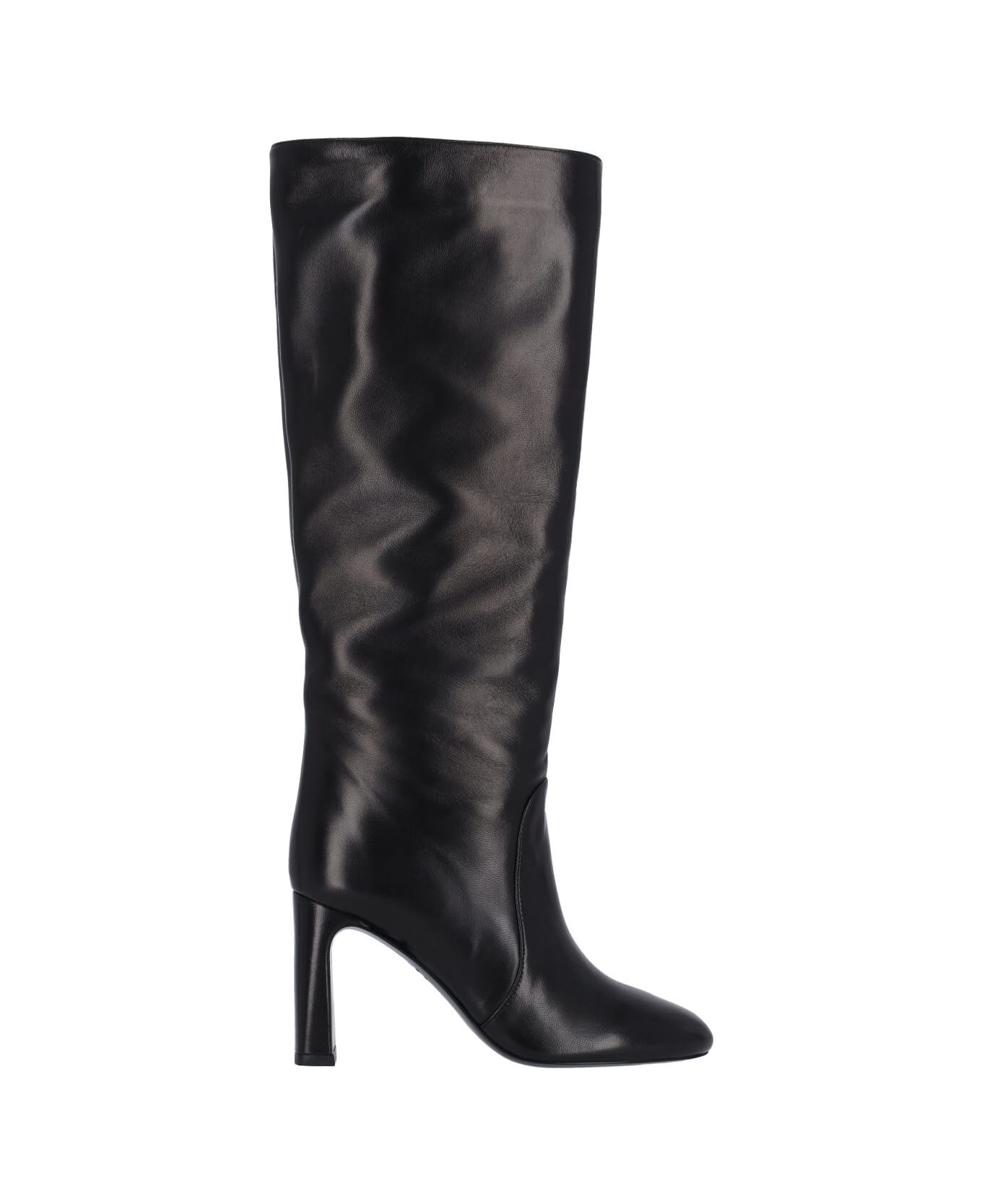 Stuart Weitzman 'Babette 85' black lambskin boots with round toe, square heel, slip-on fit, leather sole. Composition: 100% Lambskin Made in: Spain Color: Black Size and fit: - Altezza tacco 8.5 cm Model number: SL545BLK