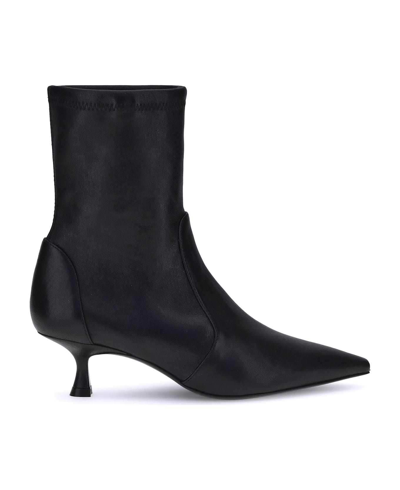 Stuart weitzman's naomi ankle boots combine elegance and comfort in an essential design. featuring a fitted silhouette with an elongated toe, they have a practical slip-on style and a refined kitten heel that gently slims the figure. the height just above the ankle makes them versatile and perfect for both formal and casual looks. Composition: 100% % Calf Leather Bos Taurus Made in: Spain Size and fit: - 3 cm Model number: SJ404BLK