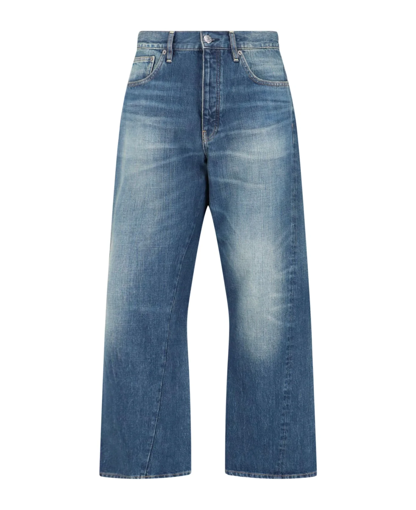 Sunflower wide twist jeans in blue cotton denim with mid waist, button closure, belt loops, five pockets, logo patch at the back, wide leg. Composition: 100% Cotton Made in: Tunisia Color: Blue Size and fit: - vestibilita ampia Model number: 51441DEEP