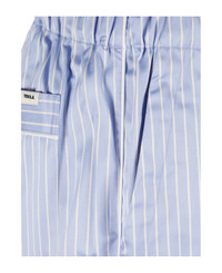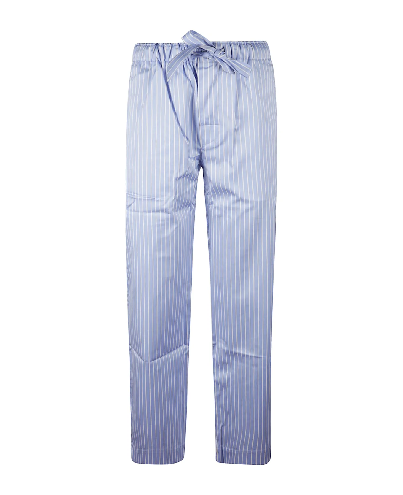 TEKLA striped pajama bottoms in blue organic cotton satin, featuring a gathered waist, a striped bow at the waist, a single back pocket and white trim at the sides. Composition: 100% Organic Cotton Made in: Portugal Color: Blue Model number: 57400149PANTSPOLOSTRIPES