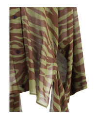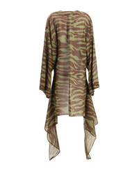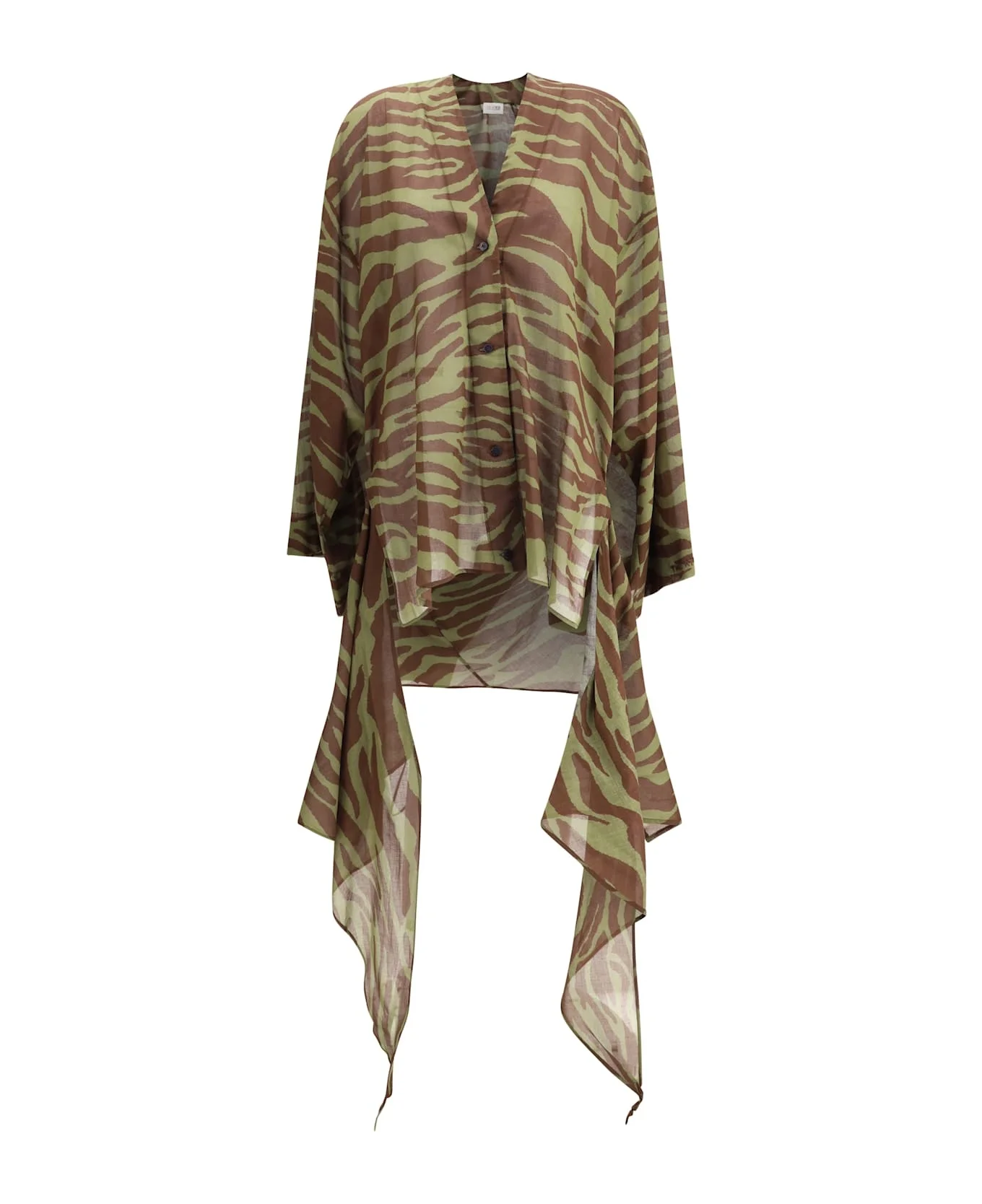 The asymmetrical cotton dress with wide sleeves by the attico is a contemporary style statement. featuring a v-neckline at the front and long, voluminous sleeves, it has a front button closure that emphasizes its casual elegance. the refined design features an asymmetrical silhouette, with the back panel longer than the front, creating a dynamic and sophisticated silhouette. two wide side sashes, which can be knotted and passed over the shoulder or worn loosely in a sarong style, add versatility and a tailored touch. the semi-transparent animal-patterned fabric completes the look with bold, sensual elegance. Composition: 100% % Cotton Made in: Italy Color: Green Model number: 250WCA00404CCC082PR