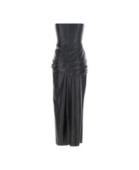 Midi dress Black Off-shoulder Sleeveless Ruched waist Front single slit Leather Regular fit Composition: 100% Lamb Leather Made in: Romania Color: Black Model number: 250WCW00215LBT128AA100