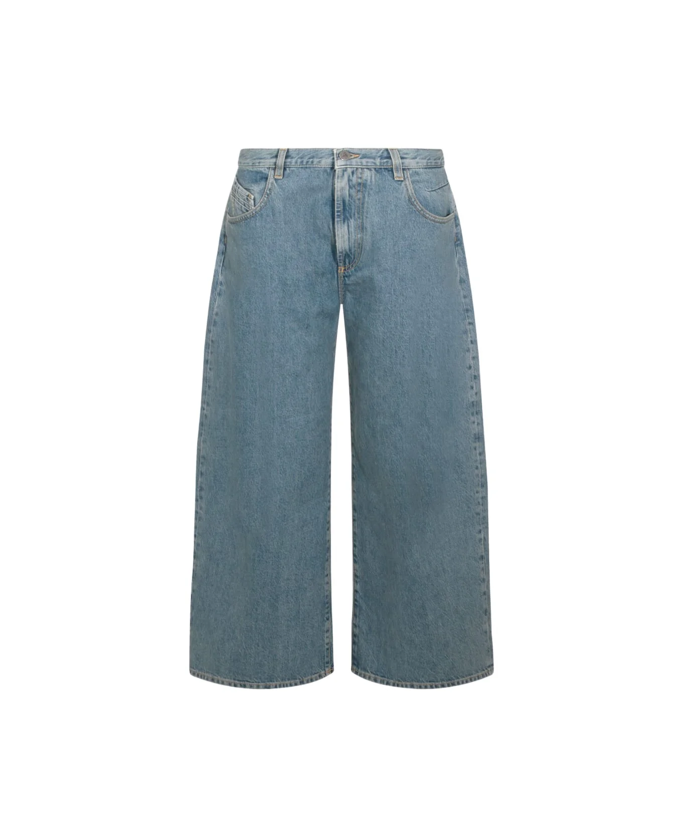 Blue cotton jeans from The Attico featuring midi waist, belt loops, frontal zip and button fastening, pockets, wide vestibility and short length. Composition: 100% Cotton Made in: Italy Color: Blue Model number: 260WCP00293DDD116AA024