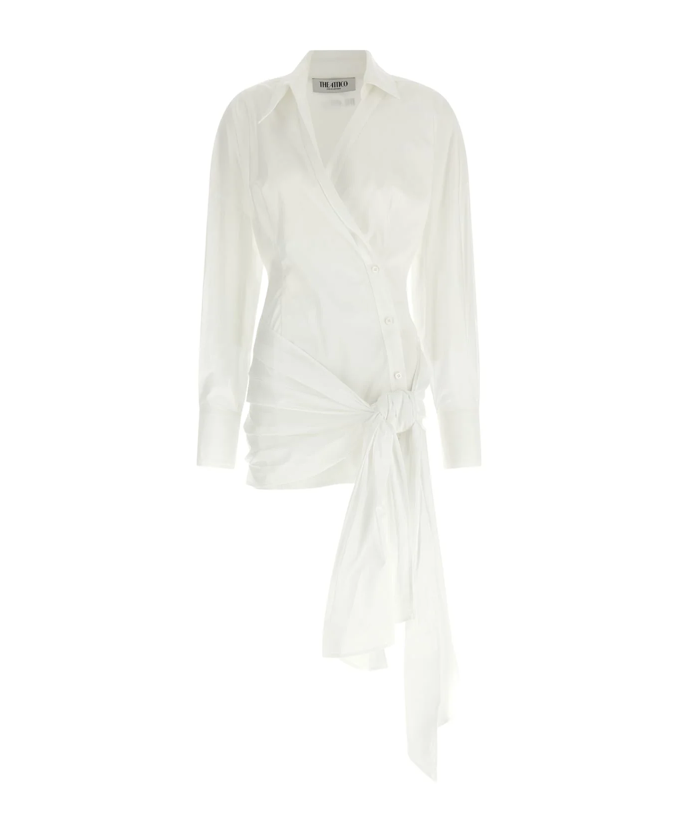 Mini dress in cotton poplin with front asymmetrical button closure, long wide sleeves with cuffs and dropped shoulder, skirt with sash to tie as desired. Composition: 97% cotton, 3% elastane Made in: Italy Color: White Size and fit: - true to size fit Model number: 260WCA00464001