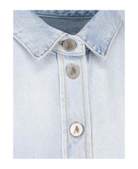 The Attico 'Diana' shirt jacket in light blue cotton with distressed wash, classic collar, button closure, yellow logo embroidery on the chest, button cuffs, side split, asymmetric hem. Composition: 100% Cotton Made in: Italy Color: Light Blue Size and fit: - vestibilita morbida Model number: 250WCB00068DDD085SS024