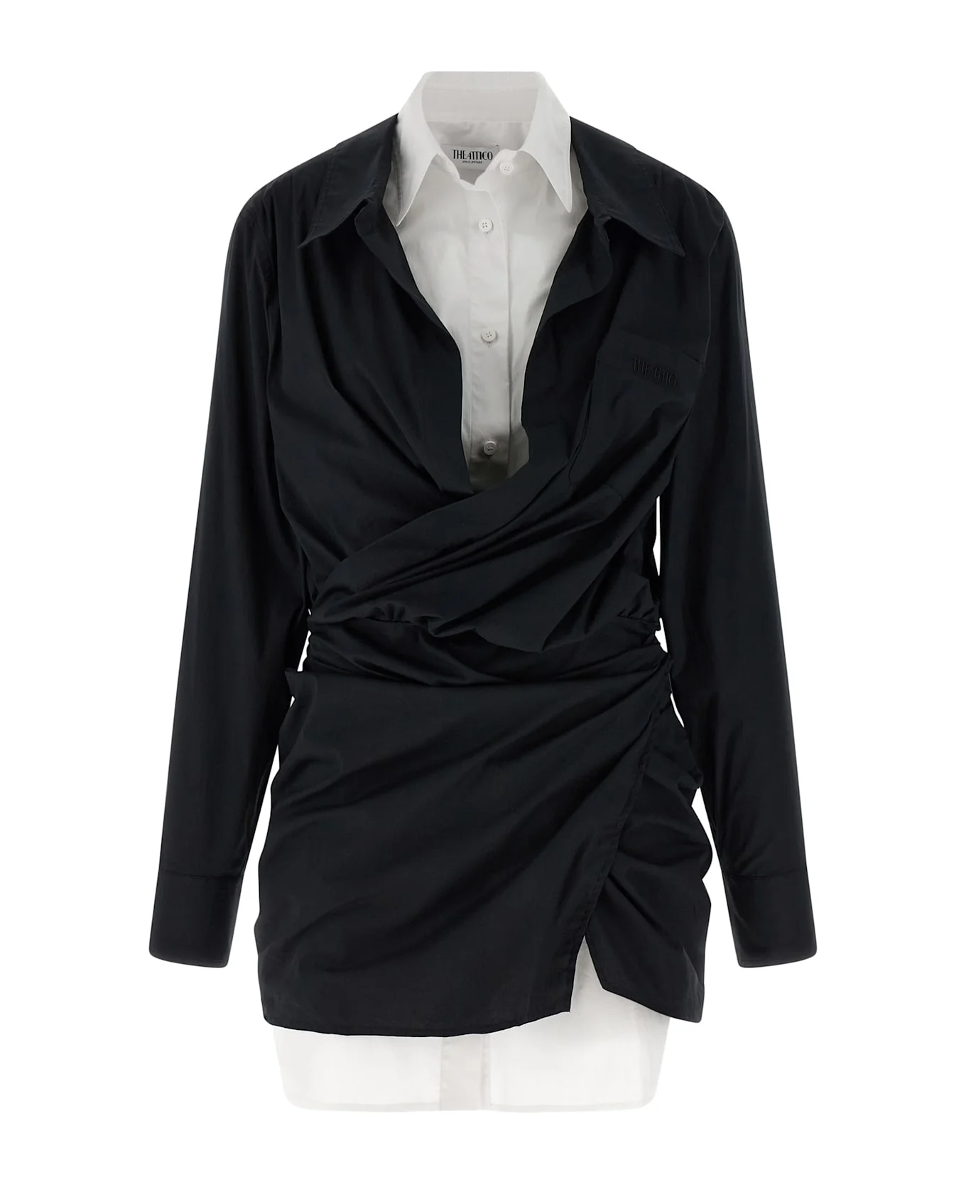 Double layer mini dress in stretch cotton poplin, chemisier model, logo embroidery and front button closure, long cuffed sleeves, and asymmetrical hem. Composition: 97% cotton, 3% elastane Made in: Italy Color: White/Black Size and fit: - true to size fit Model number: 260WCA00458414