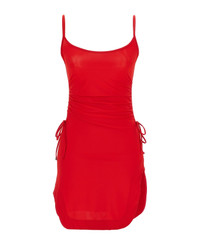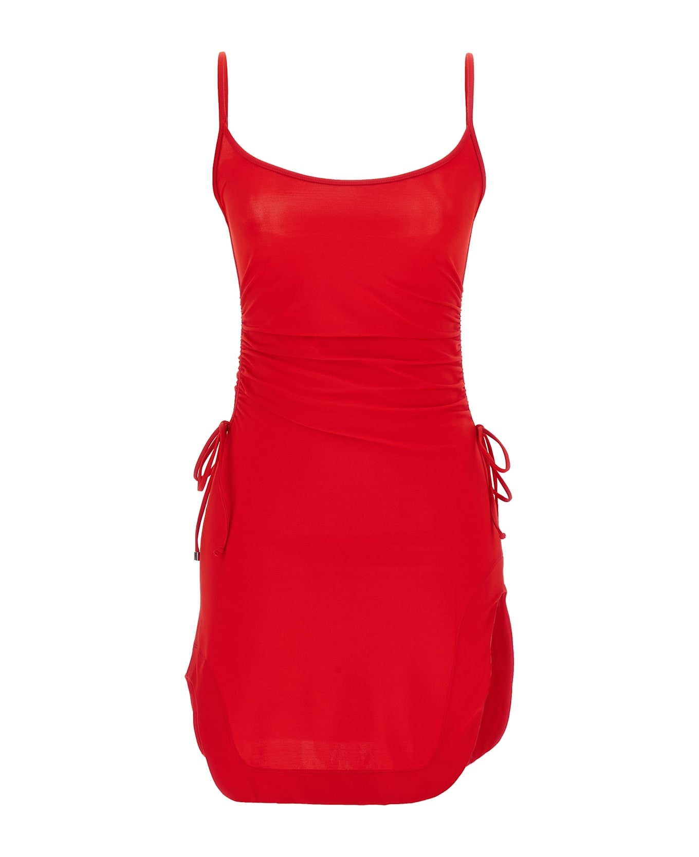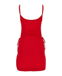 'Estate Meravigliosa' mini dress in stretch lycra, side drawstring with draping, sleeveless, thin straps, shaped side slits. Composition: 80% polyamide, 20% elastane Made in: Portugal Color: Red Size and fit: - true to size fit Model number: 250WCA00405PAA094AA010