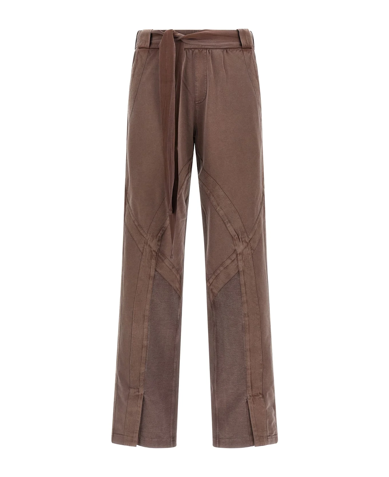 Light American fleece pants with ribbed details, trompe l'oeil flap, elastic and ribbon to tie at the waist, pockets, tone-on-tone embroidered logo on the back, front split on the leg bottom. Composition: 96% cotton, 4% elastane Made in: Portugal Color: Brown Size and fit: - true to size fit Model number: 260WCP00292064