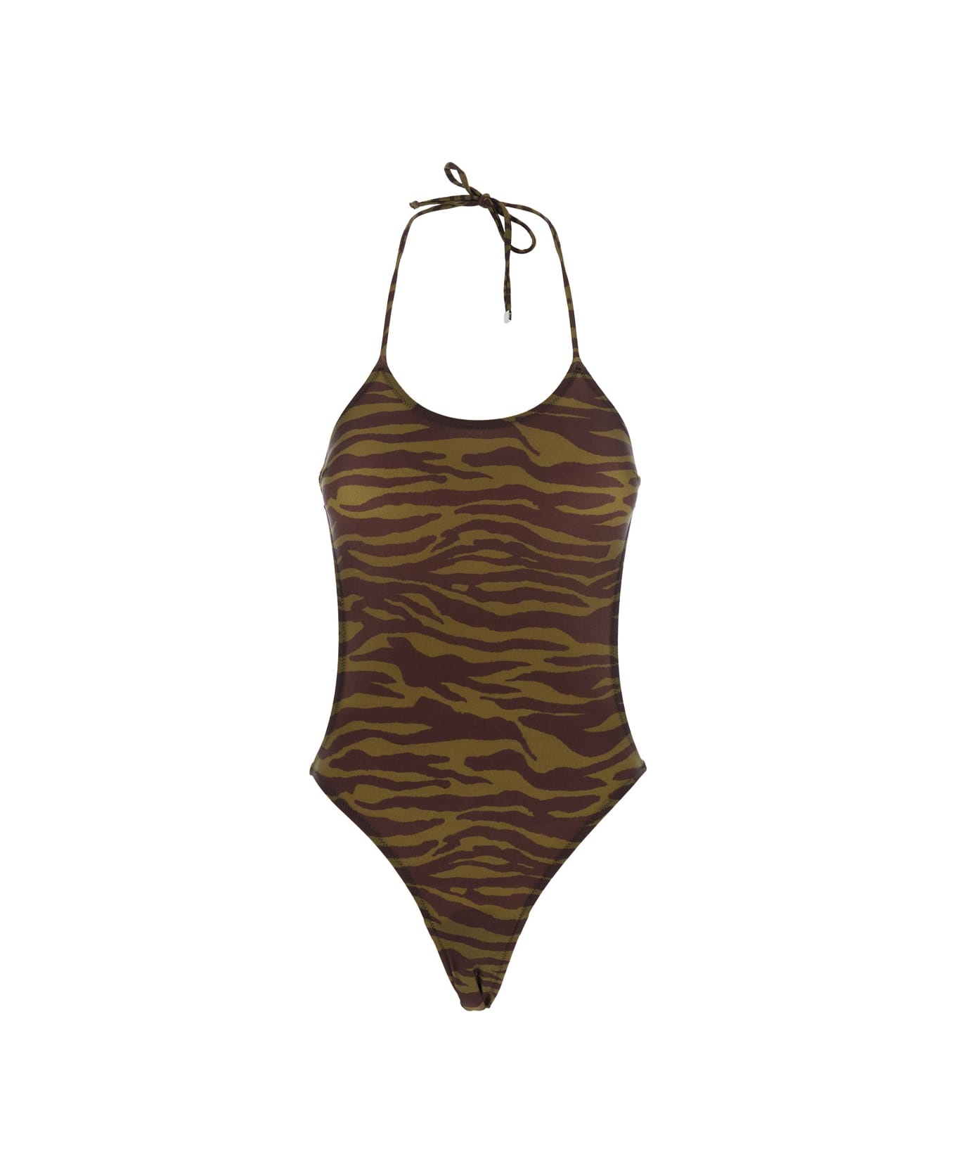 Zebra-print halterneck swimsuit Green