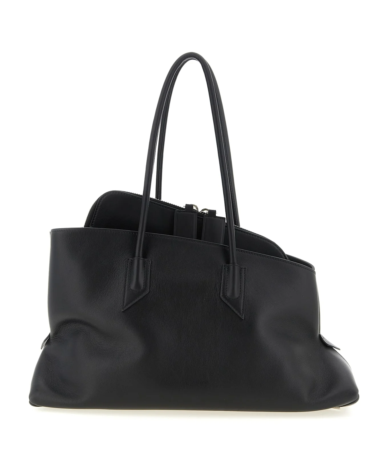 'La Passeggiata Medium' shoulder bag in calf leather, front embossed logo, double fixed tubular handle, top zip closure, side pockets, rigid base with metal logo feet. Composition: 100% calfskin leather (Bos Taurus) Made in: Italy Color: Black Size and fit: - W 42.5 x H 26 x D 16 cm Model number: 250WAH00054LBT019AA100