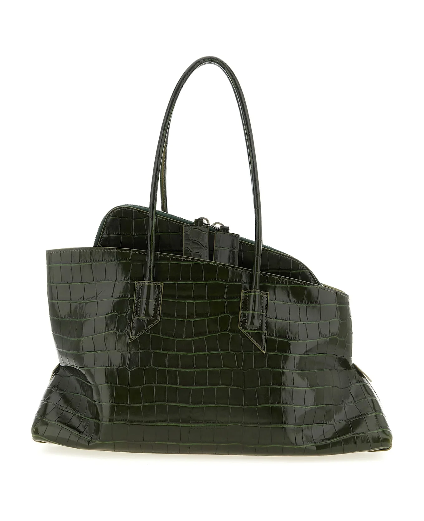 'La Passeggiata Medium' crocodile-print leather shoulder bag with front embossed logo, double fixed tubular handle, top zip closure, side pockets, rigid base with metal logo feet. Composition: 100% calfskin leather (Bos Taurus) Made in: Italy Color: Green Size and fit: - W 42.5 x H 26 x D 16 cm Model number: 260WAH00054129