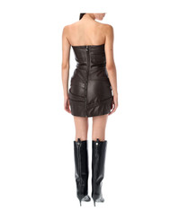 Leather Mini Dress By The Attico. Featuring: Strapless Back Zip Fastening Draped Slim Fit Model Is 1,70 M And Wears Size 40 Composition: 100% lamb leather (ovis aries aries) Lining, 100% viscose Made in: Romania Color: DARK BROWN Model number: WCA00361LBT128AA204