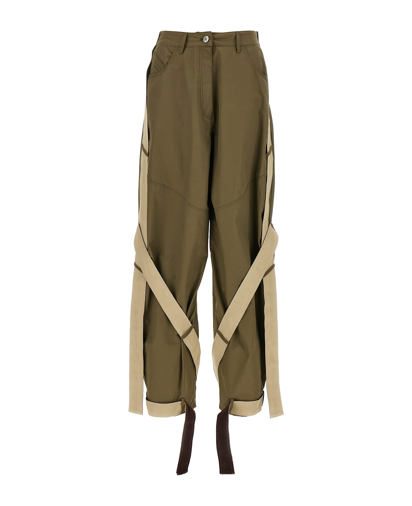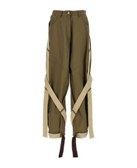 'Military' cotton gabardine trousers with two-tone grosgrain side inserts, zip and front button closure, pockets, high waist model. Composition: 64% cotton 36% polyamide Made in: Italy Color: Green Size and fit: - true to size fit Model number: 251WCP00270081